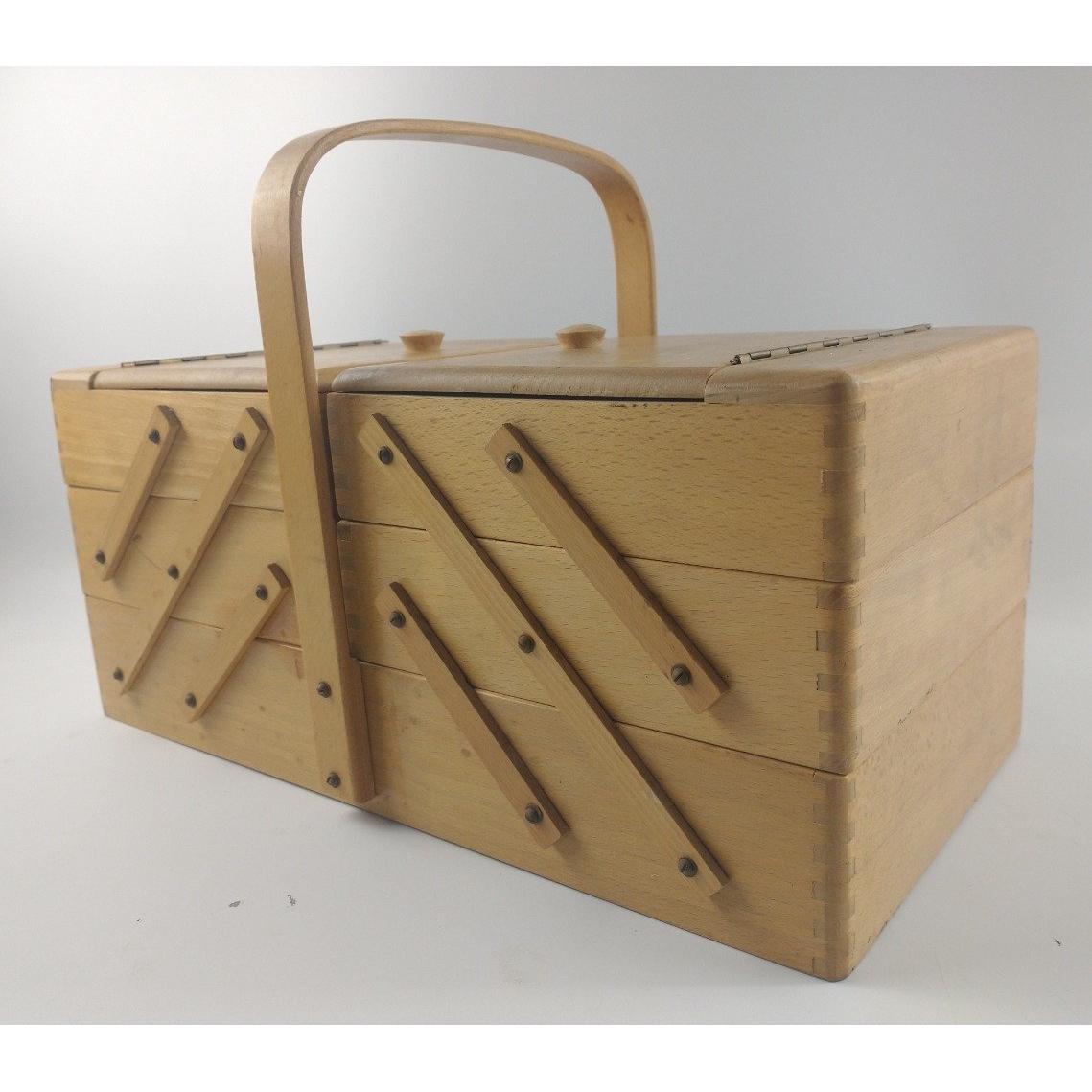 A SUBSTANTIAL CANTILEVERED SEWING BEE sewing box Length when extended a whopping 97cm!