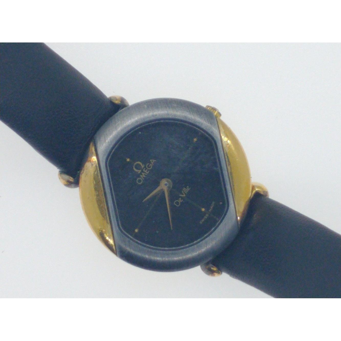 An OMEGA De VILLE ladies wafer-thin wrist watch with black leather watch strap