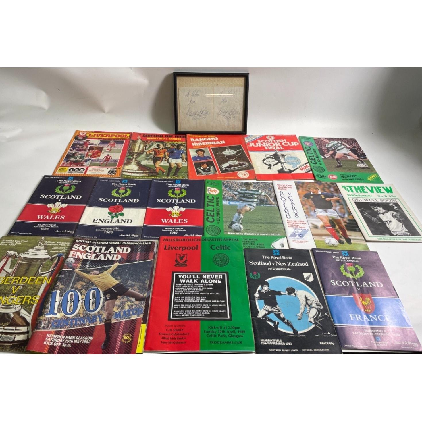 A SMALL FRAMED SIGNED AUTOGRAPH OF DANNY Mc GRAIN Celtic FC, and a small collection of VINTAGE football PROGRAMMES to include LIVERPOOL AND CELTIC 30th April 1989 and SCOTLAND V CYPRUS 1989 etc etc