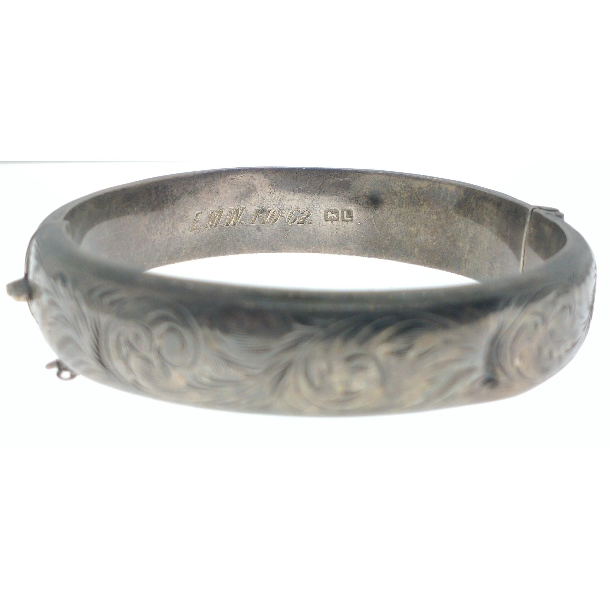 A SILVER HALLMARKED snap shut bracelet c1962 with a SILVER BIRMINGHAM stamped brooch decorated with horseshoes and thistles in copper gross weight 4.75g Gross weight approx 20gApprox 2 pieces