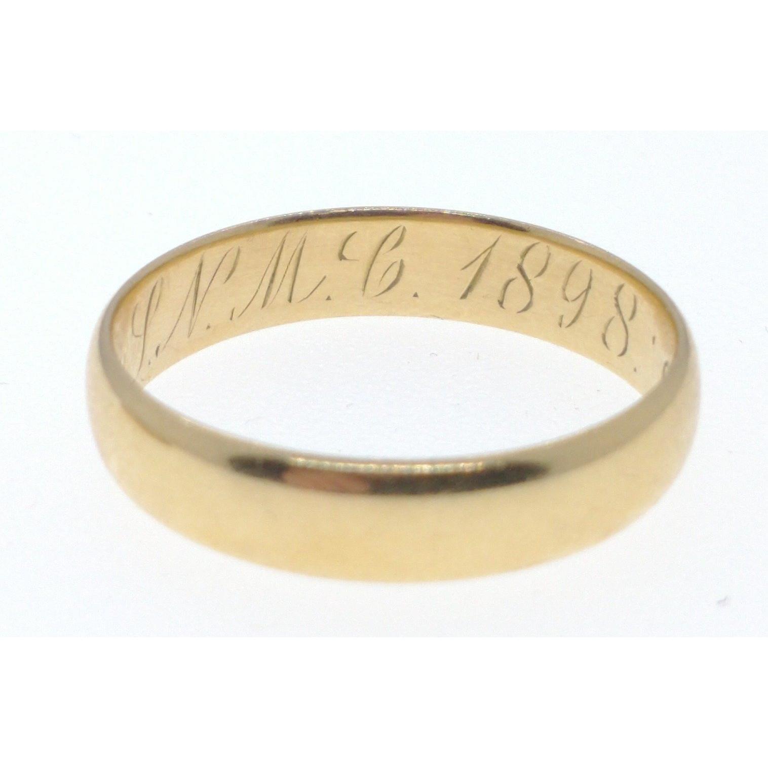 Two wedding bands 1 size Q/R hallmarked Birmingham 18Kt, gross weight 2.5gms, the other size O hallmarked Birmingham 18Kt, dated 1898 on inscription inside, gross weight 3.2gmApprox 2 pieces