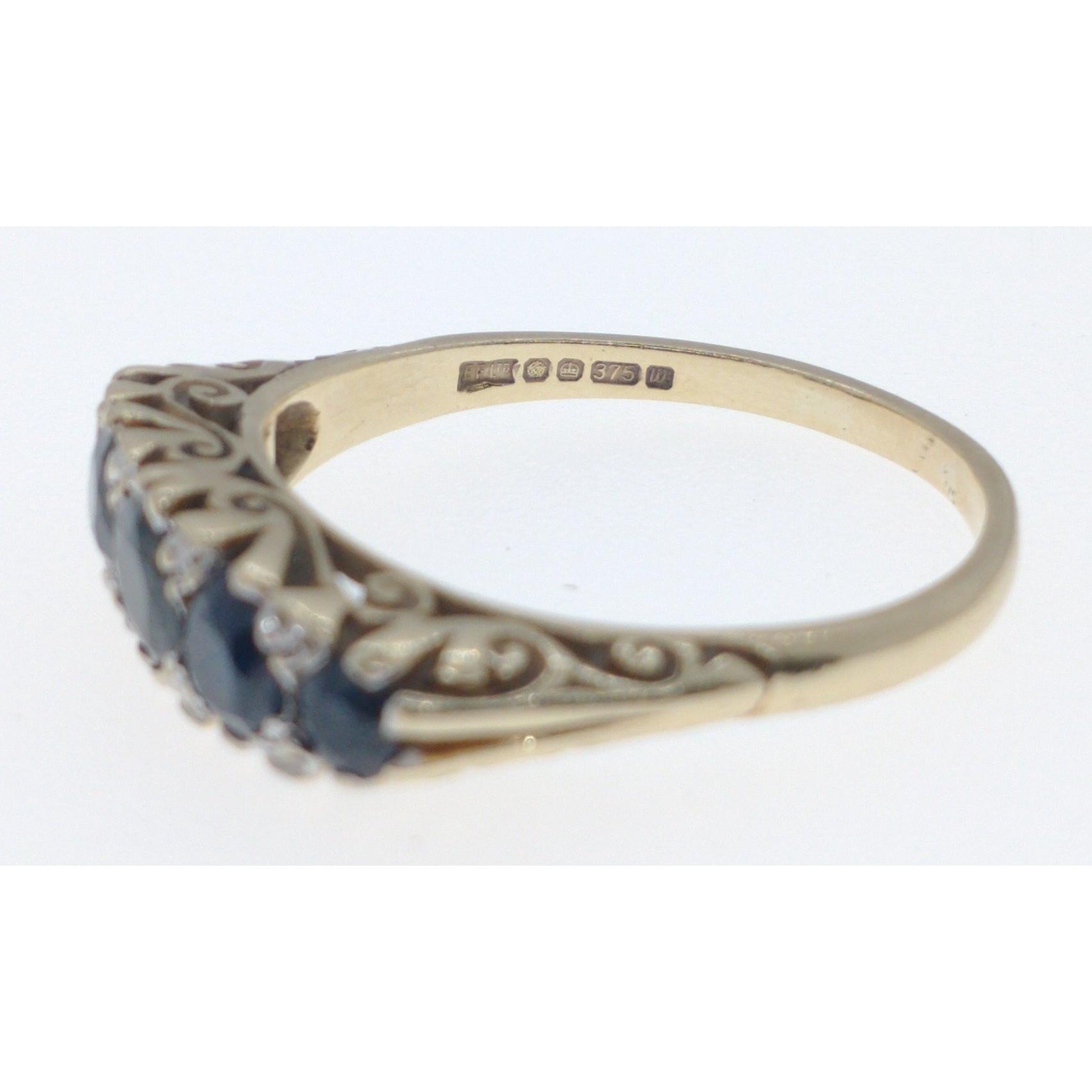 IMPRESSIVE Lady's ring with 5 sapphires size P hallmarked 375, gross weight 3.3gms and the other with 2 amethyst coloured stones size P hallmarked 375, gross weight 2.8gms.Approx 2 pieces