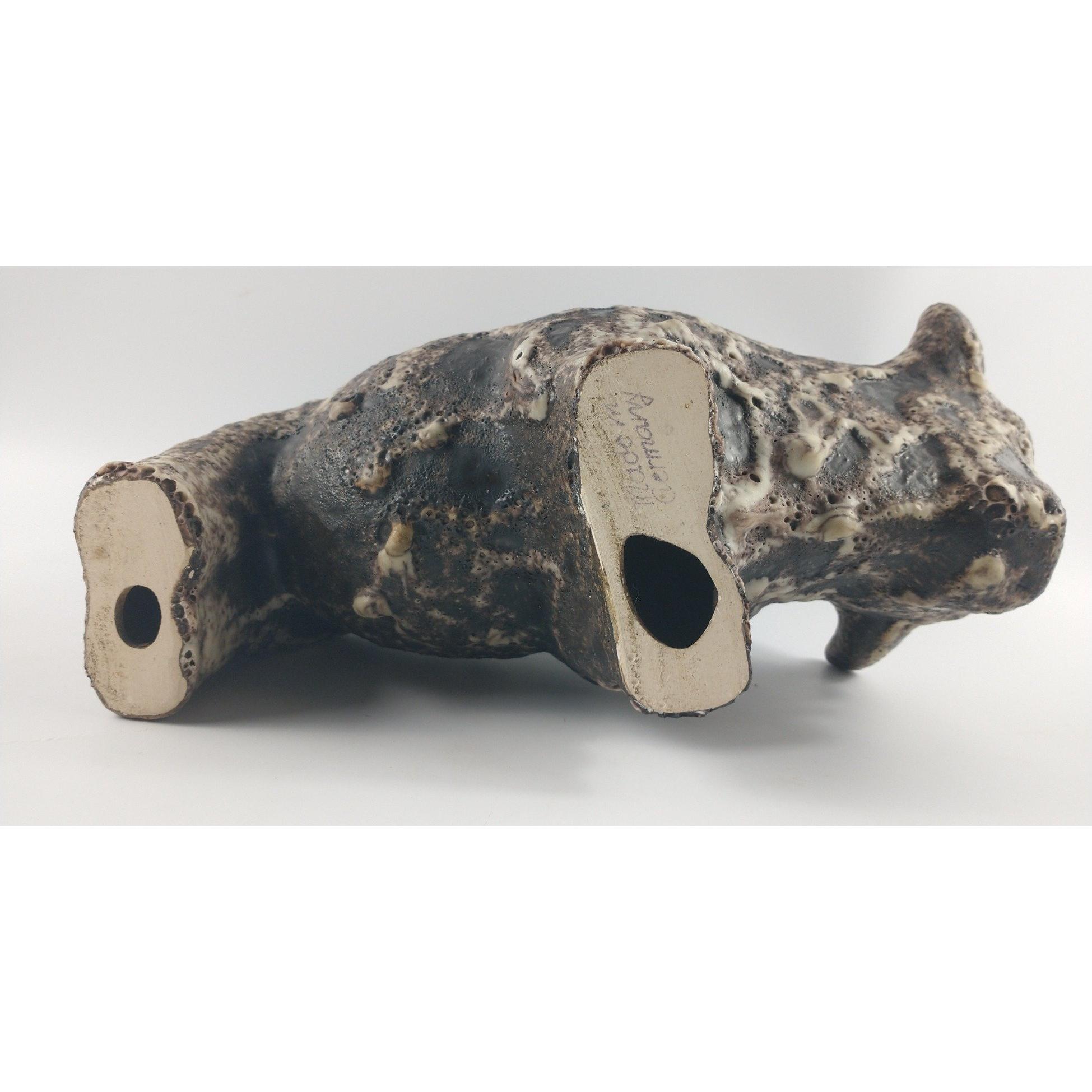 Studio pottery model of a bull or bison made in Germany in the fat lava style 33cm approx.