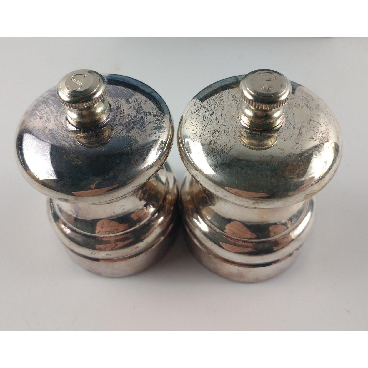 BOTH BOXED AS NEW! A silver-plated JOHN LEWIS salt mill and a silver-plated JOHN LEWIS pepper grinder each 7cm high.Approx 2 pieces
