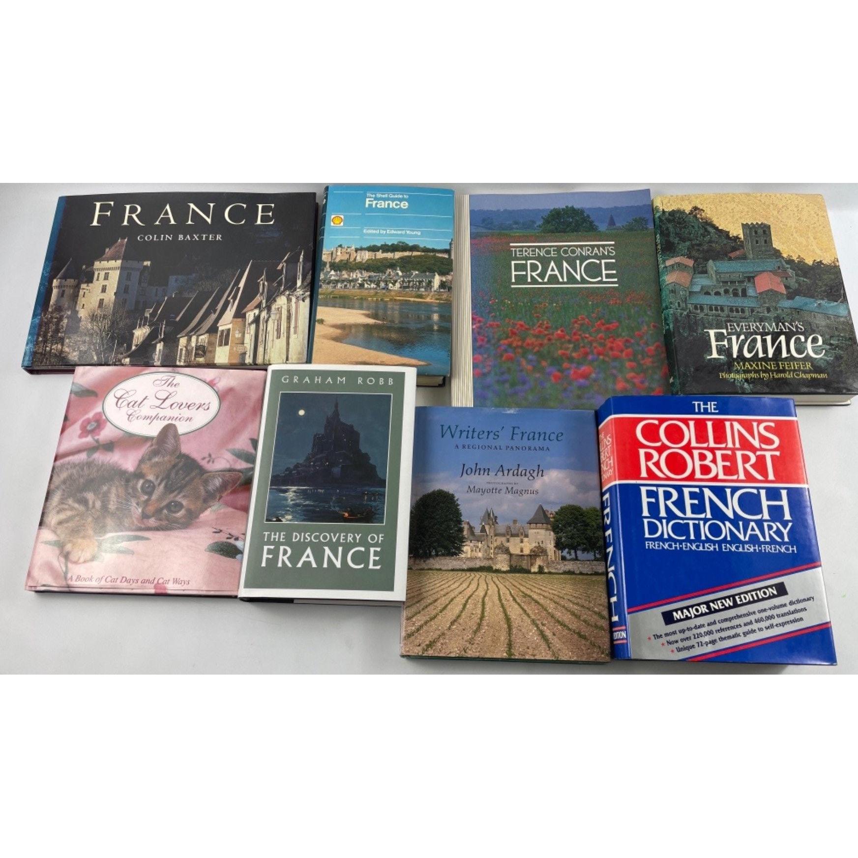 A selection of books about FRANCE to include TERENCE CONRAN'S FRANCE, EVERYMAN'S FRANCE by Maxine Feifer, THE SHELL GUIDE TO FRANCE, FRANCE by Colin Baxter, A VOUS LA FRANCE BBC beginners course, LIVING IN FRANCE TODAY by Philip Holland, THE SELF-CATERING HOLIDAY GUIDE TO SHOPPING AND COOKING IN EUROPE by Nicholas Courtney, SETTING UP IN FRANCE by Letitia de Warren and Catherine Nollet, THE COLLINS ROBERT FRENCH DICTIONARY, THE FRENCH CENTURY by Brian Moynahan, WRITER'S FRANCE by John Ardagh, THE DISCOVERY OF FRANCE by Graham Robb, Lionel Aggett's FRANCE, LE GIMMICK: FRENCH AS THE FRENCH SPEAK IT by Adrienne, FRANCE EXTRA! BBC second stage course, FRANCE: Phaidon Cultural Guide THE LAND OF FRANCE by Ralph Dutton