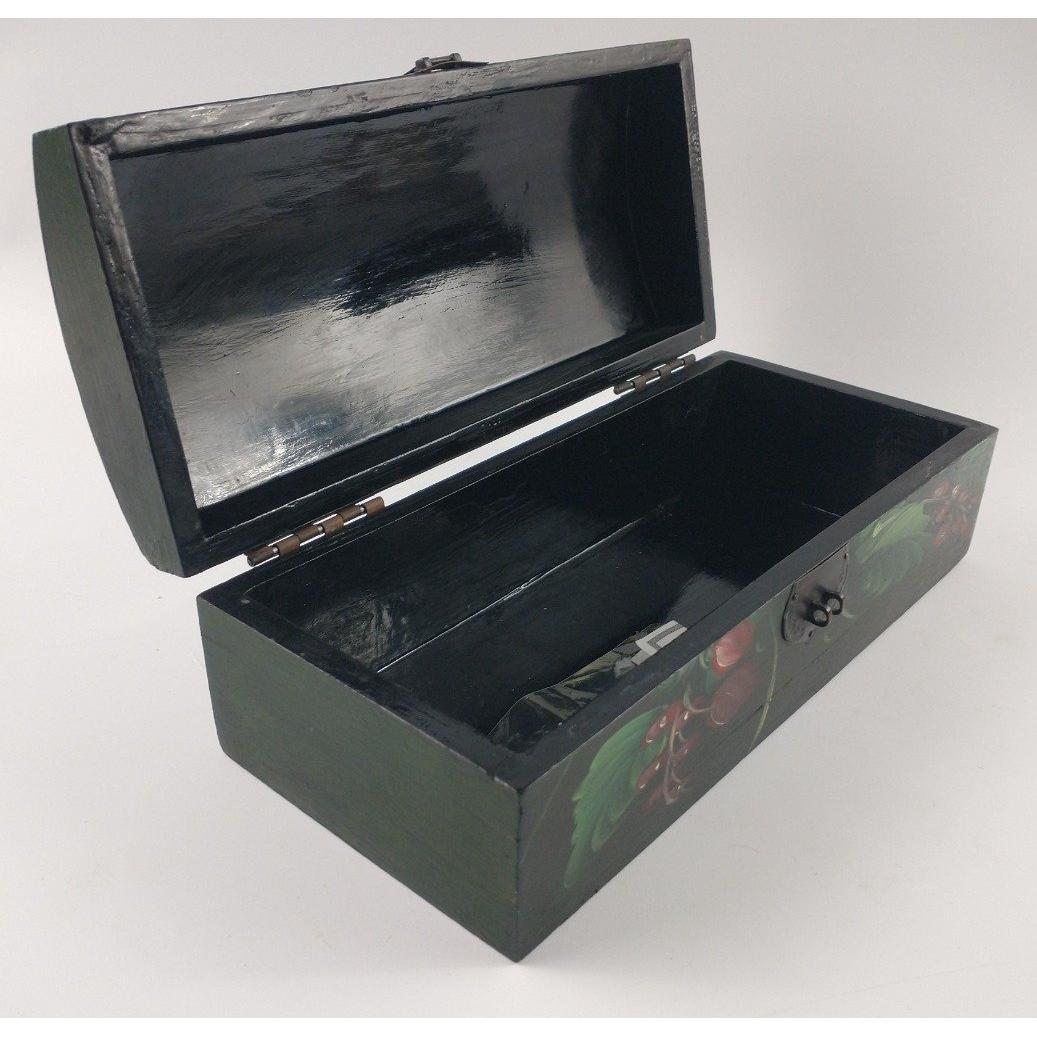 A BEAUTIFUL HAND PAINTED keepsake or jewellery box W: 26cm approx H: 10cm approx D: 12cm approx