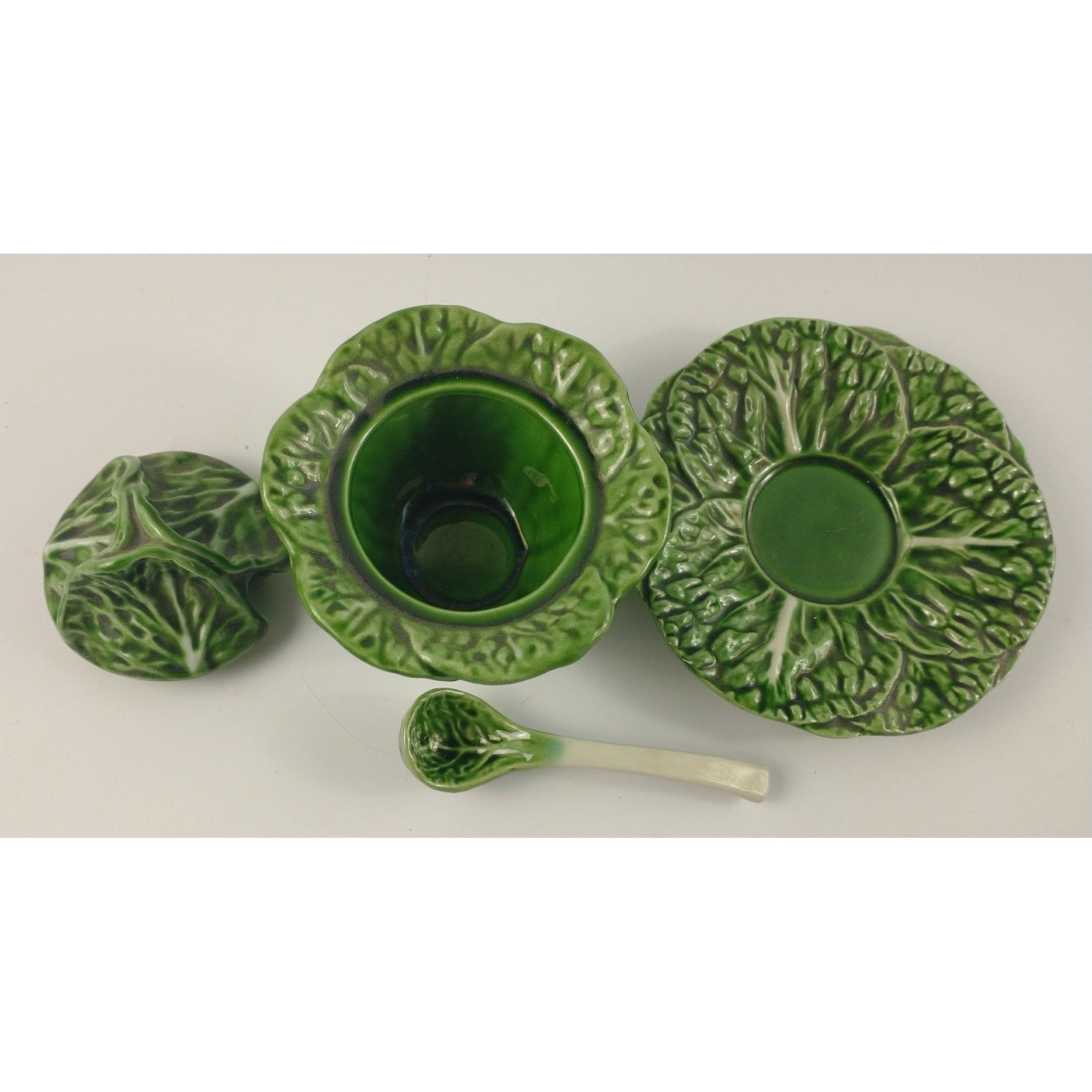 A COLLECTABLE green cabbage condiment dish with lid and spoon probably SYLVAC.