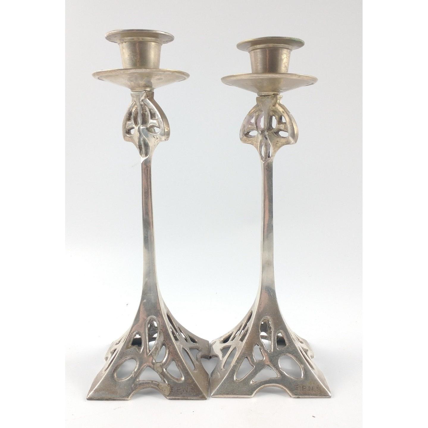 A pair of ARTS N CRAFTS inspired candle sticks EPNS - NICE QUALITY! 24cm in height approxH: 24cm approx Approx 2 pieces