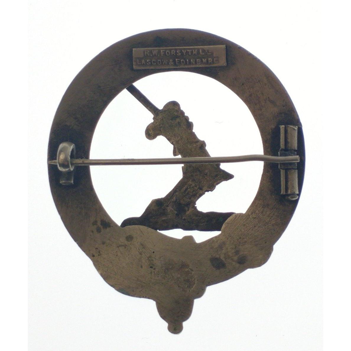 VINTAGE PRO REGE ET PATRIA For King and Country (Regimental motto) 1st QUEENS DRAGOON GUARDS pin badge stamped RW FORSYTH Glasgow & Edinburgh 4.5cm diameter in white metal