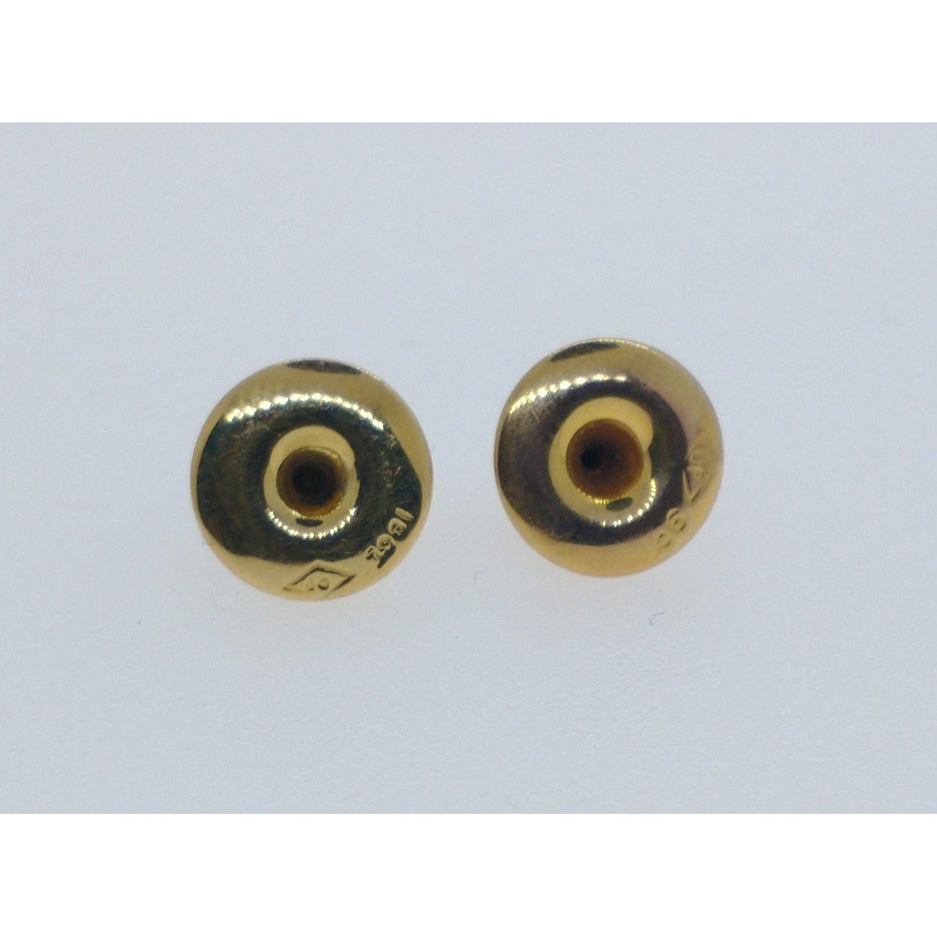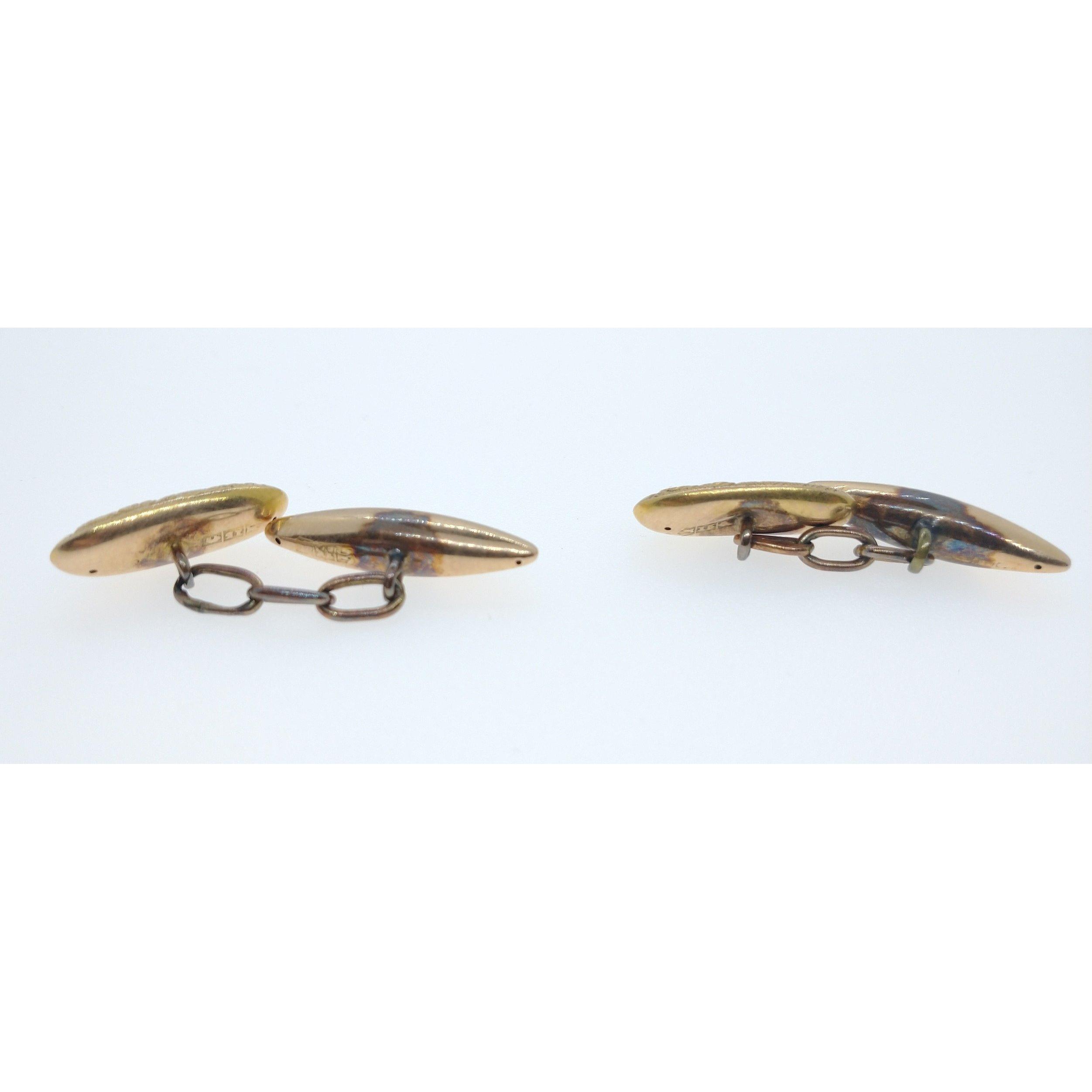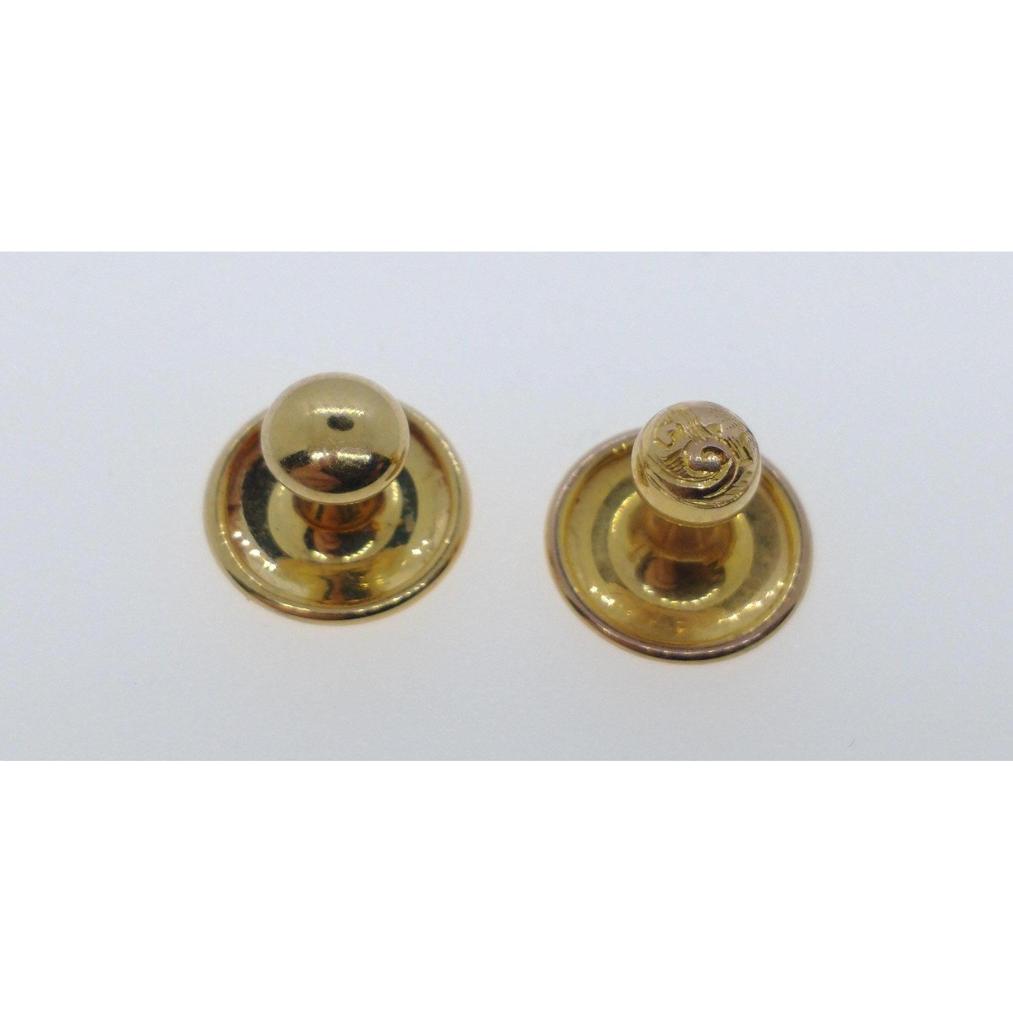 Presentation case with gold shirt studs and pair of cufflinks. 3 studs with engraved ends marked 9ct (1.5g approx), 1 plain design stud marked 18ct (approx 0.7g) and cufflinks marked 15 (4.9g approx)