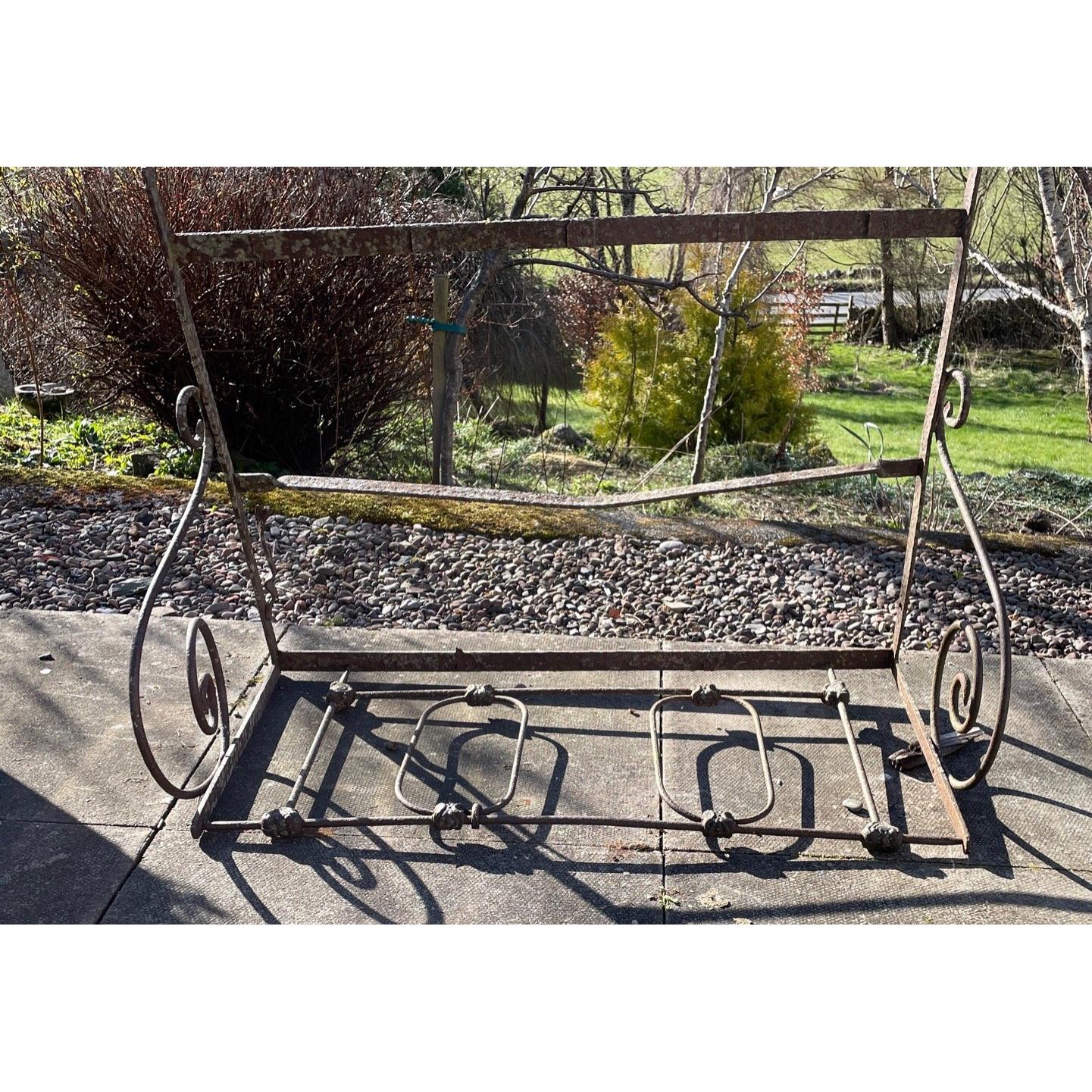 An ANTIQUE c1870 part FRENCH GARDEN iron SEAT with fantastic swirly handles!!.... AN INTERESTING GARDEN CURIO - JUST WELD ON A SET OF LEGS!!L: 1m approx H: 78cm approx
