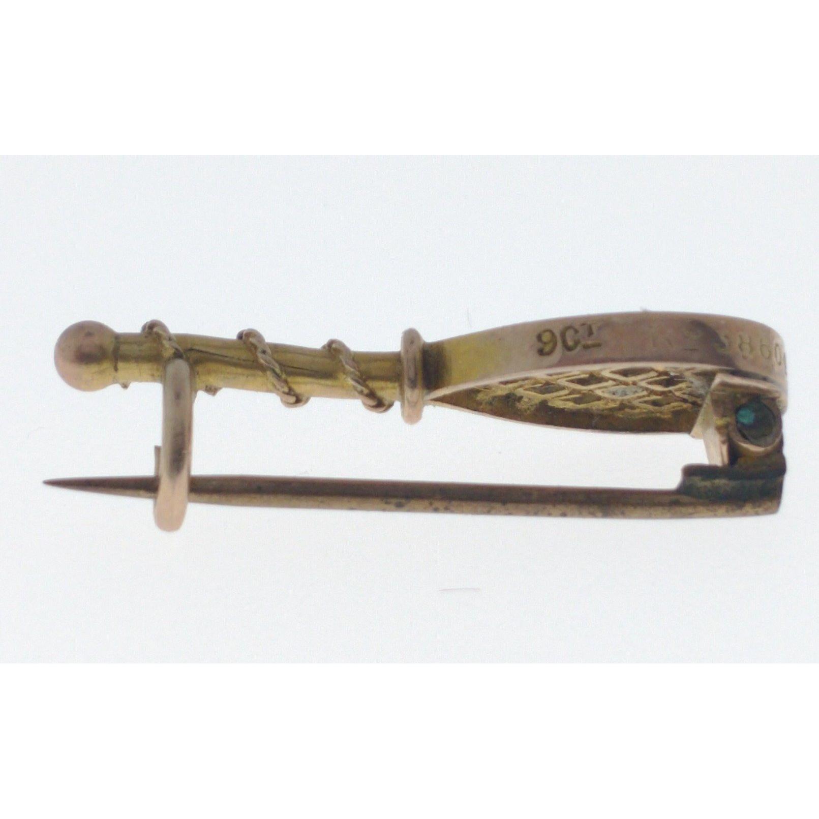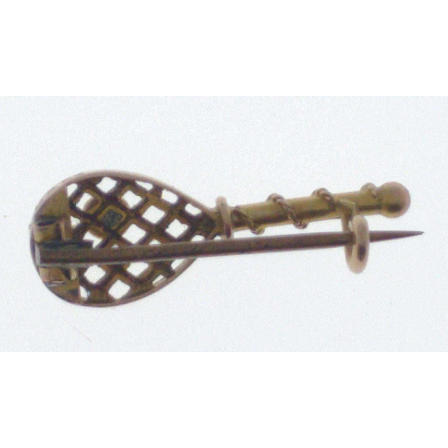 TENNIS DEUCE!! A 9ct stamped yellow gold small tennis racket and seed turquoise stone representing a ball with minute lattice work for strings - JUST LOVELY! weight gross .90g