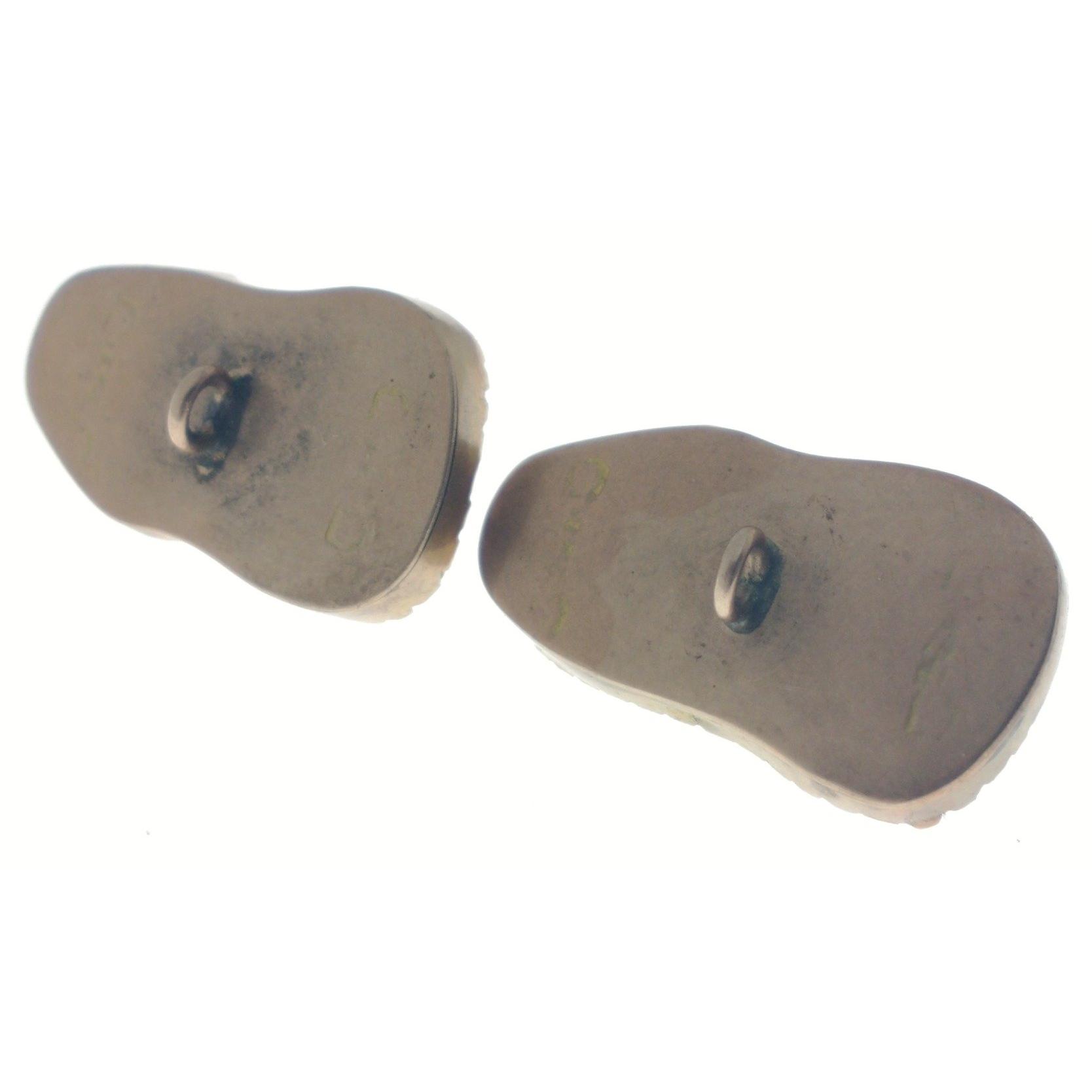 A PAIR of UNUSUAL VINTAGE handmade charms? in 'yellow metal' casing around 'MYSTERIOUS' white stones??...SO UNUSUAL! potential stamp marks are worn but this pair looks ORIENTAL? weight 8.65g gross approx (Family travelled and lived extensively within The ORIENT). Acid tests to 9ct