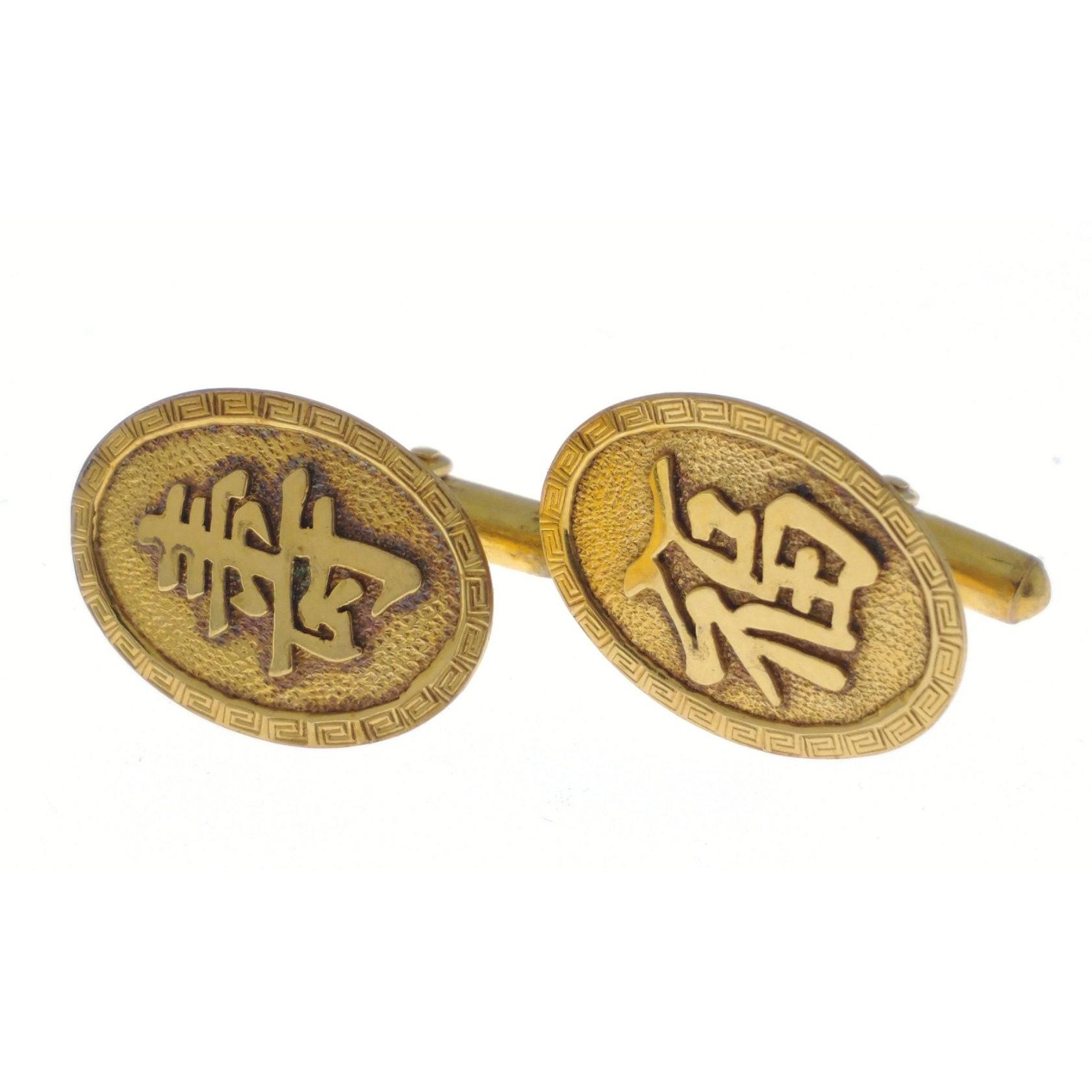 Three pairs of ORIENTAL 14k stamped CUFFLINKS weight gross purchased in The Orient.Gross weight approx 19gApprox 6 pieces