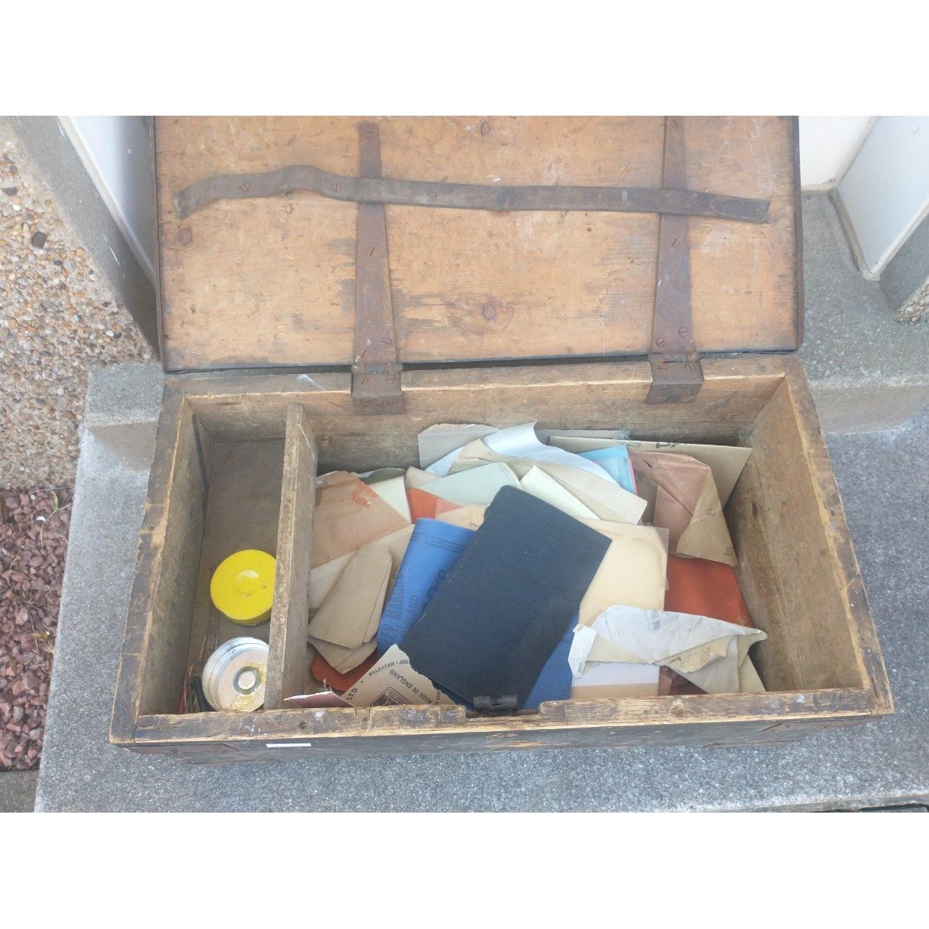 A large NICE OLD VINTAGE TOOLBOX definitely made by a tradesman and WHAT A NICE DECORATIVE PATINA!L: 85cm approx W: 35cm approx D: 28cm approx
