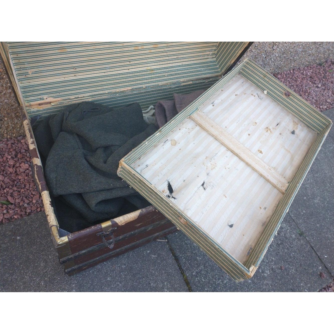 A pirate style domed topped chest with carry handles either end FILLED WITH TREASURE INSIDEL: 2.5ft approx W: 1.5ft approx H: 2ft approx