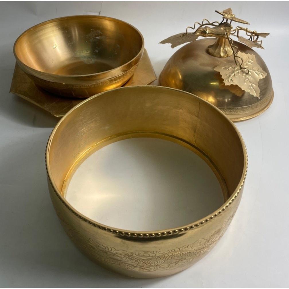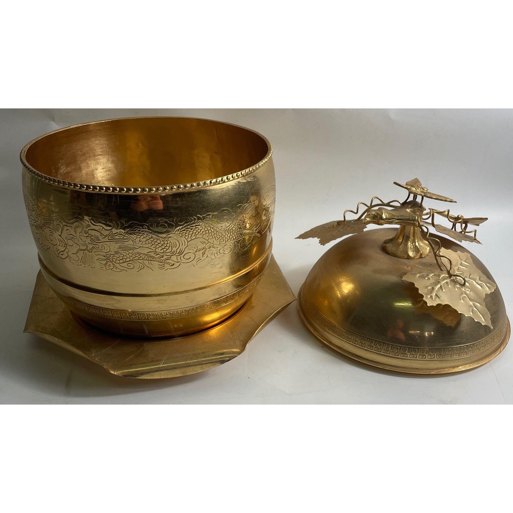SUMPTUOUS & VERY UNUSUAL! - Large gold coloured ICE BUCKET which separates into three pieces plus base tray stands approx 47cm high with a diameter of approx 25cm and a design of phoenixes.