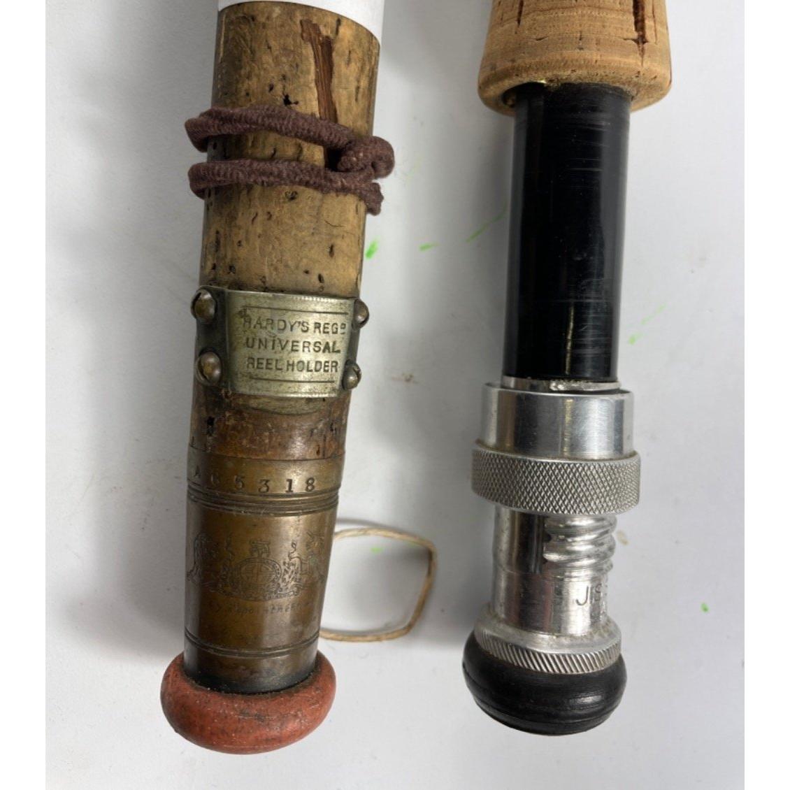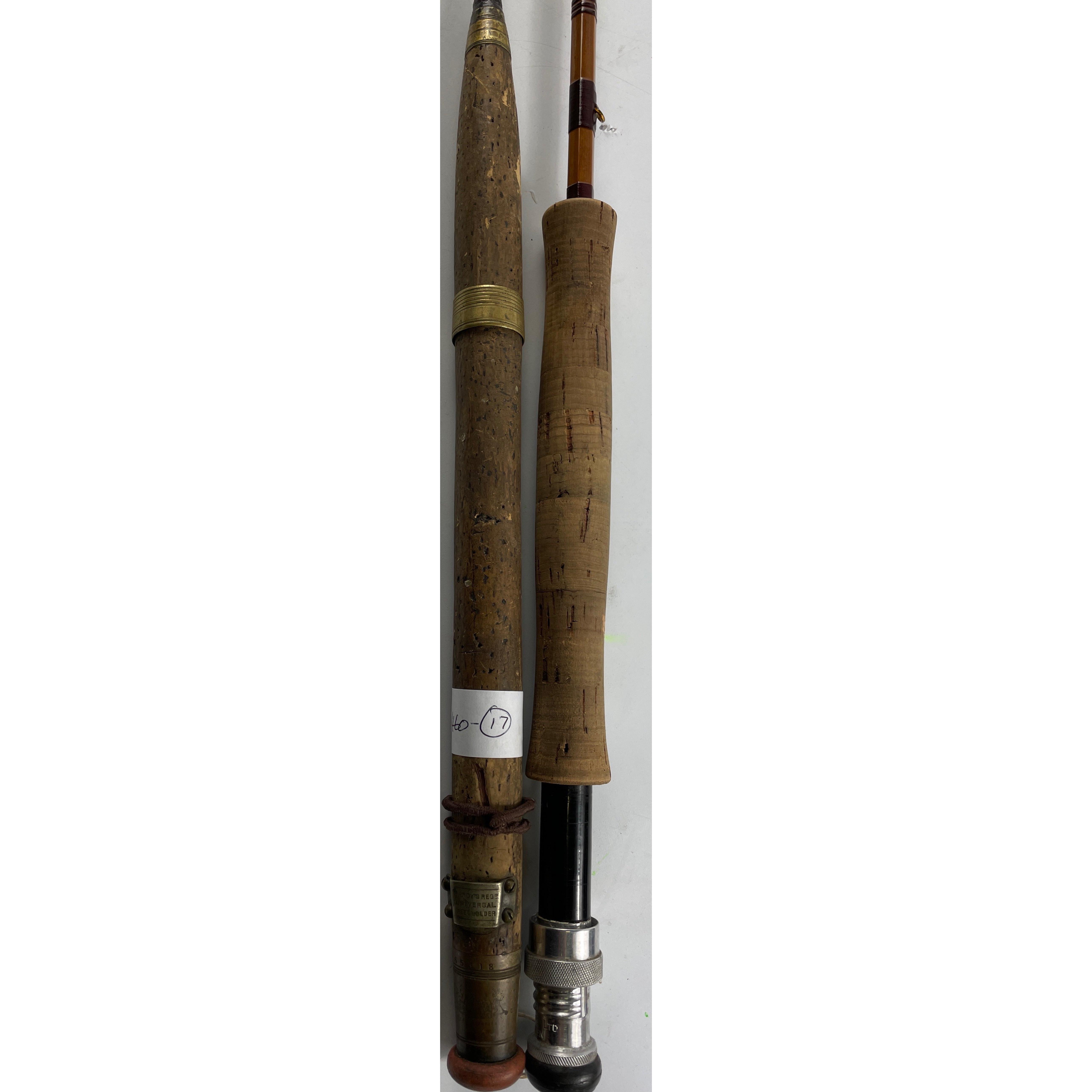A 1911 HARDY PALAKONA split cane THE PERFECTION 2 piece 9'8" fly rod, serial number A65318, no bag (re-tipped) and a JS SHARPE of Aberdeen split cane 9 1/2' 3 piece fly rod in original bag plus a catcher's net.