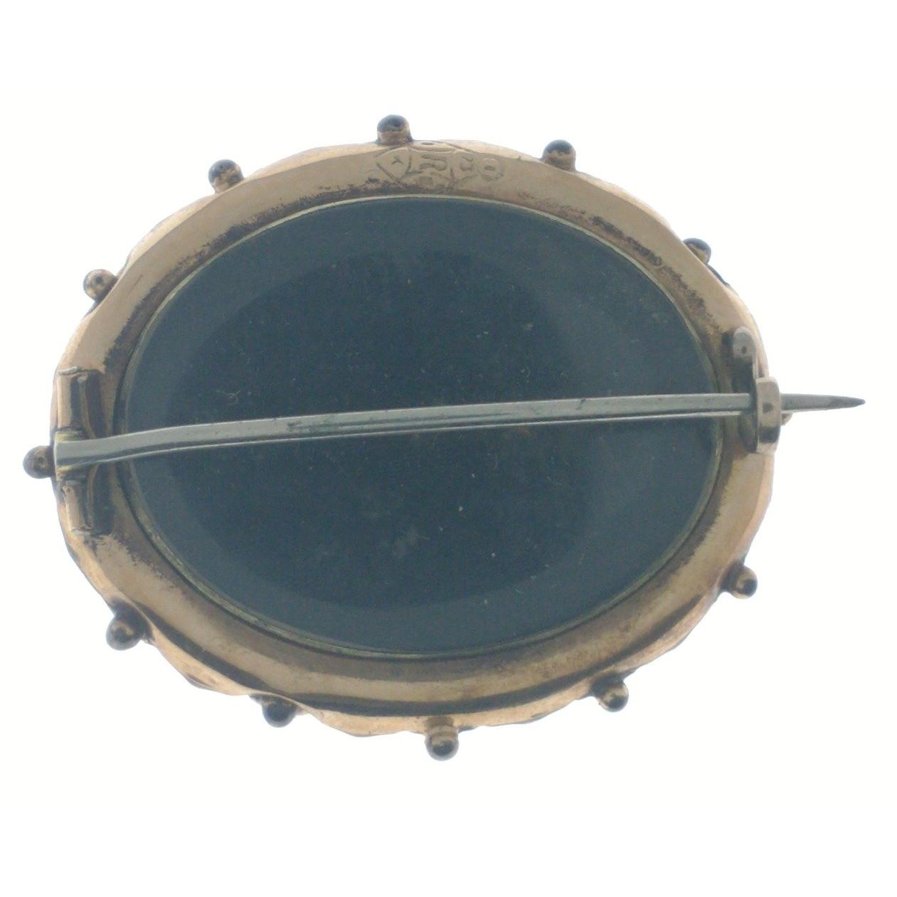 Vintage 'yellow metal' oval shaped mourning brooch set with 7 seed pearls W: 3.5cm approx H: 3cm approx