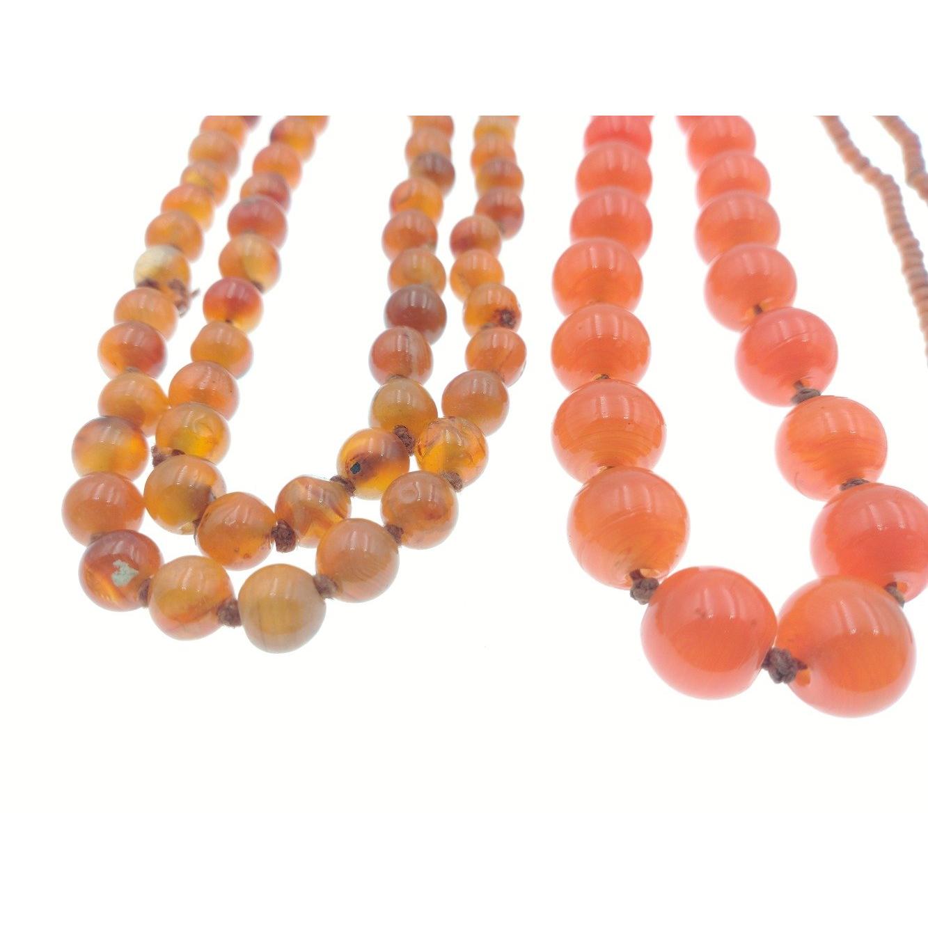 Small string of VINTAGE coral beads and 2 coral coloured strings of beads