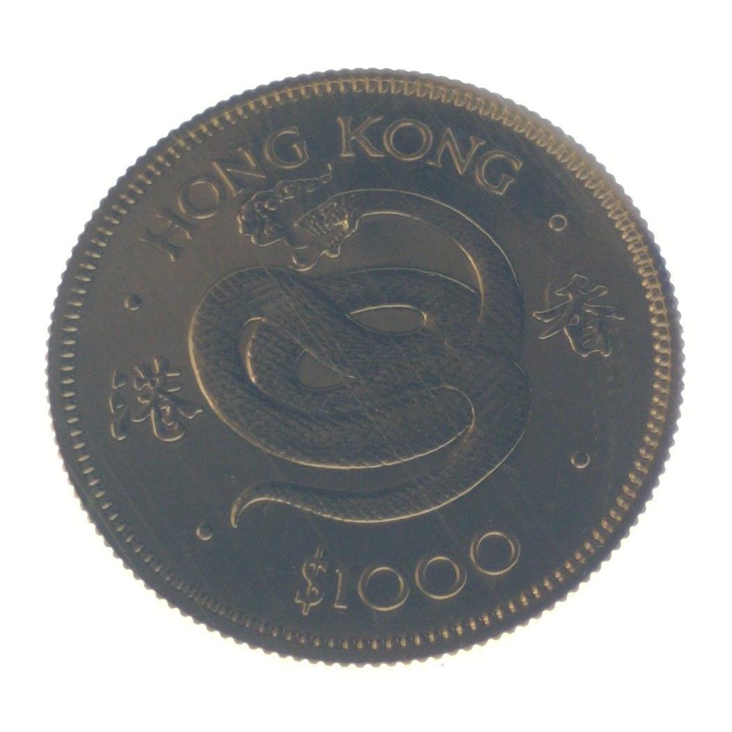 A 1977 HONG KONG $1000 Lunar Year Coin 'The Year Of The Snake' struck in 22ct yellow gold within its protective case In 1977 to celebrate the Lunar Year of the Snake, the Royal Mint released a very Limited Issue Lunar Horse $1000 One Thousand Dollar Gold Proof ...weight 15.95g - comes in a presentation case(not original) and protective plastic cover