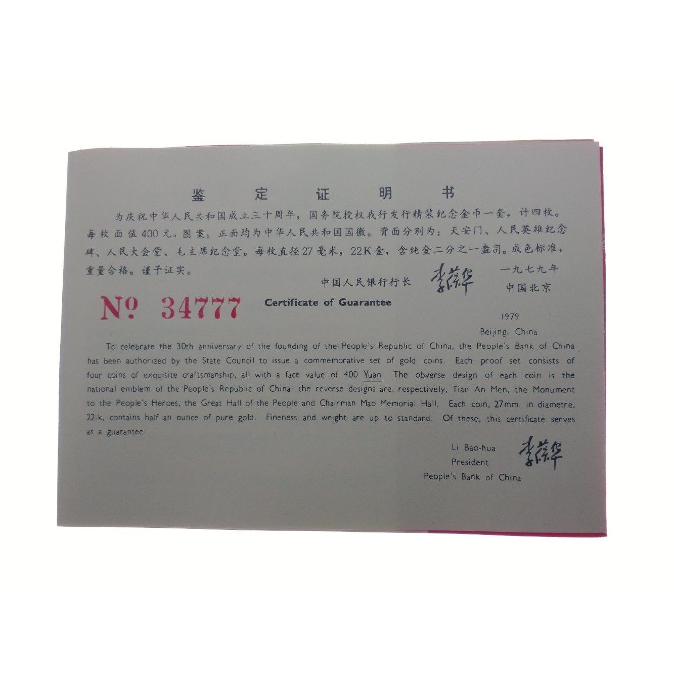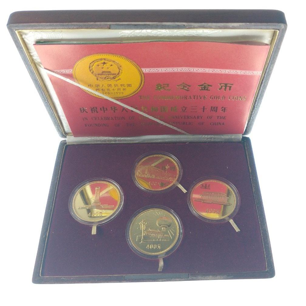 China 30th Anniversary (1949-1979) Commemorative Gold Coins Set x 4 coins-within original presentation box with booklet (Buyers premium fixed 15% of hammer price plus vat on hammer price = 18% total to pay)