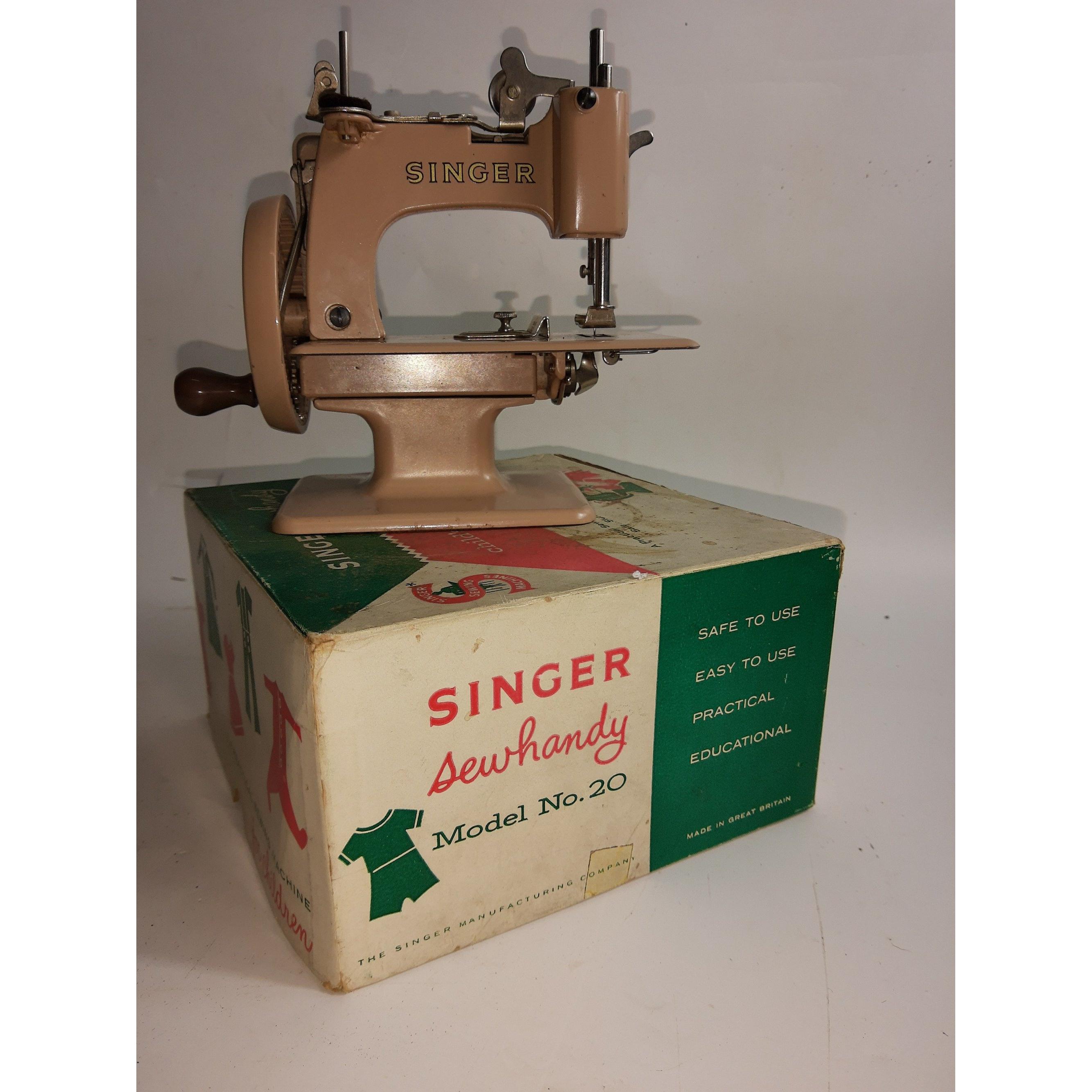 VINTAGE - child's small hand-operated SINGER SEWHANDY SEWING MACHINE model no. 20 still in its original box.
