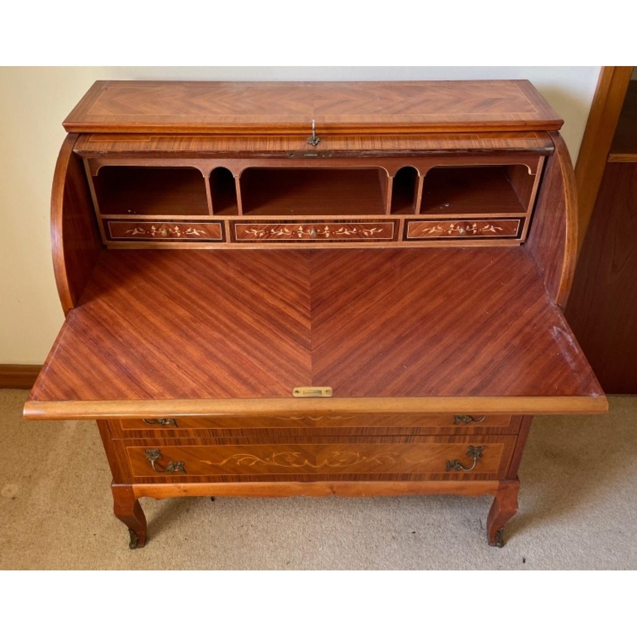 SUPER QUALITY!! AN EXQUISITE inlaid roll-top dresser with 3 drawers and 3 internal compartments with attached drawers L: 90cm approx H: 97cm approx D: 46cm approx