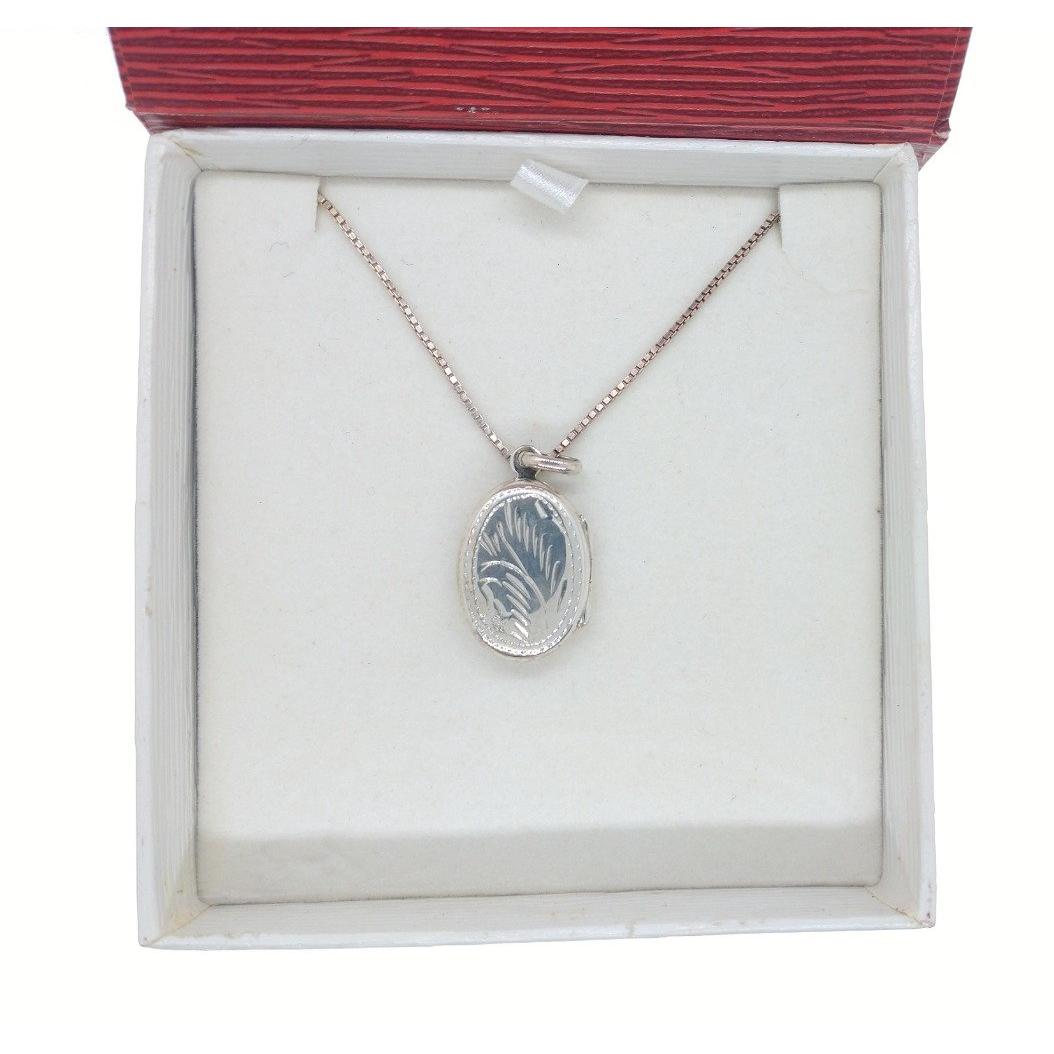 925 Stamped silver oval engraved locket and chain [locket 2cm. 25cm with chain ]Gross weight approx 5.80