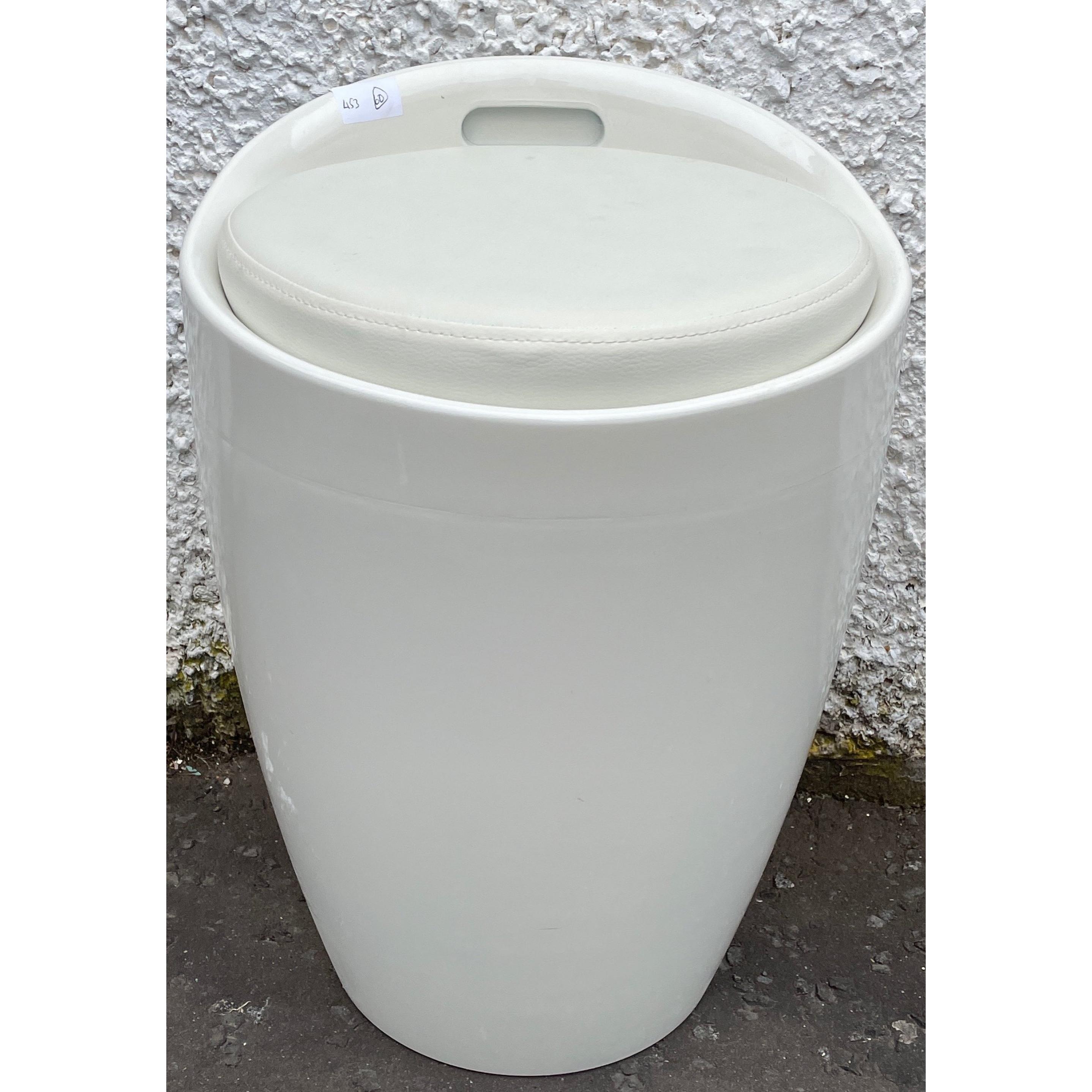 A RETRO inspired tub-seat used for storage also in a white/creamy colourH: 50cm approx D: 25cm approx
