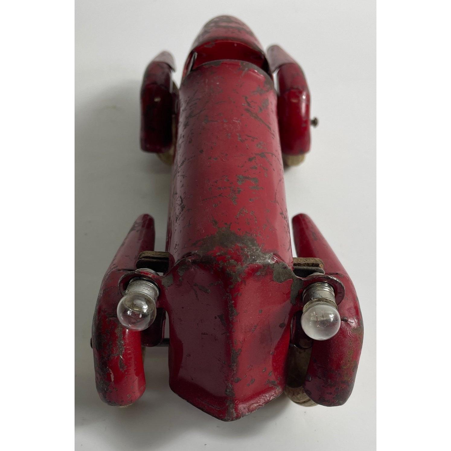 VINTAGE Rare WYANDOTTE 1930's racing car. Pressed steel original tires. Working lights but needs wired V/good + cond, length 22cm