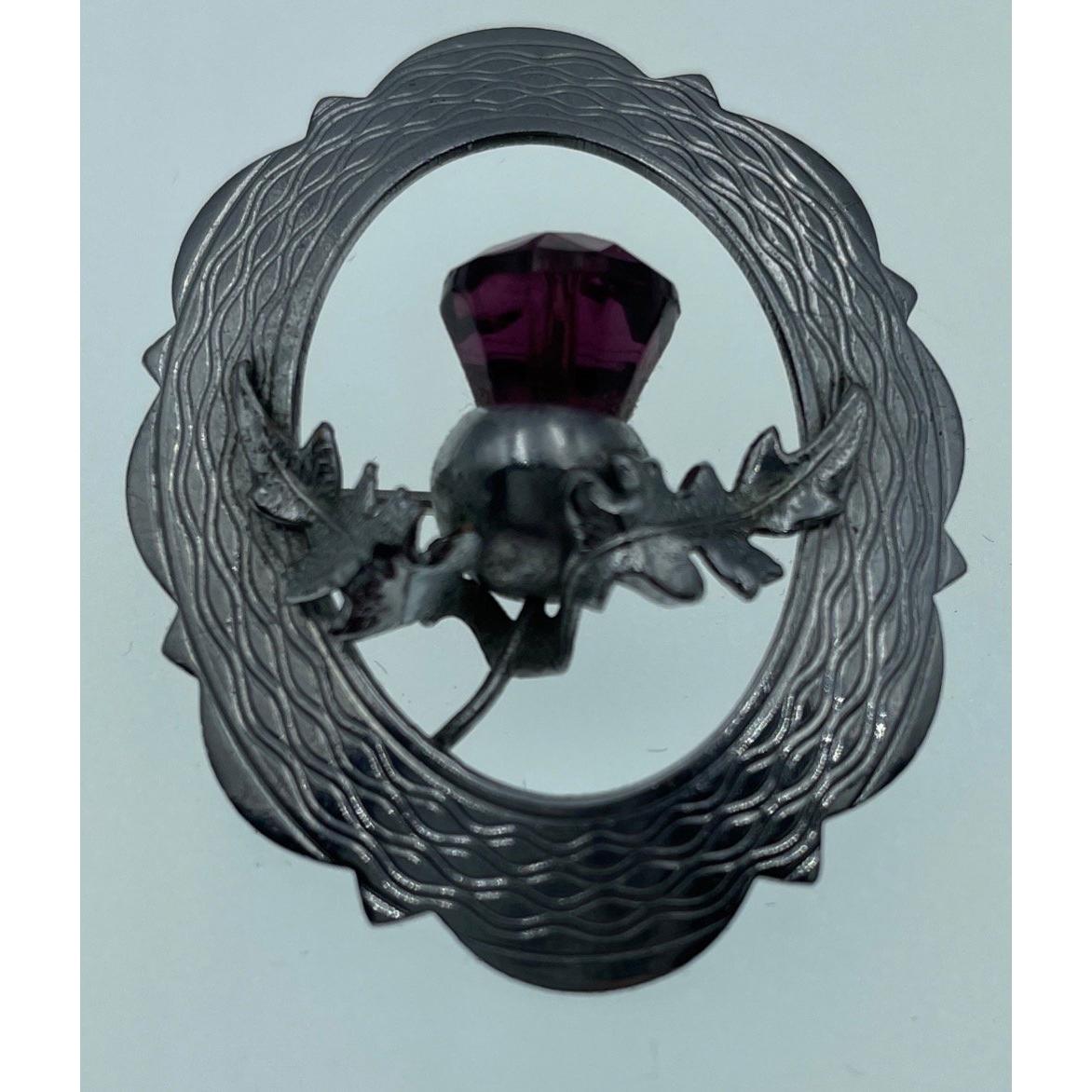 A vintage MIZPAH brooch with thistle (approx 5cm long), plus a ring stamped 925 with white stone and floral surround (gross weight 5.9g size N), and one other rolled gold ring with 2 stones size P