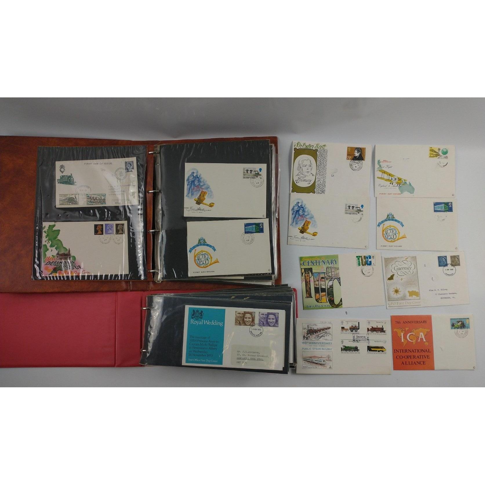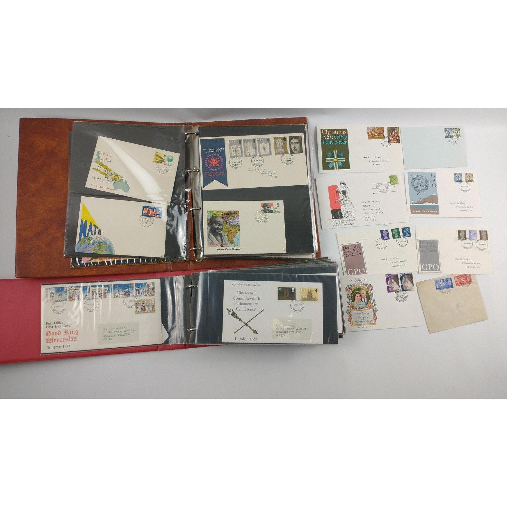 An album of collection of UK FIRST DAY COVERS dating from 1969 to include the IXth Commonwealth Games 1970, The British Museum Last Day cover for TUTANKHAMUN 1972, Air France CONCORDE 1980, Charles Darwin 1982 plus an album beginning 1966 incuding commemorating the Bicentennial of American Independence 1776 - 1976, many definitive issues plus many, many more loose covers