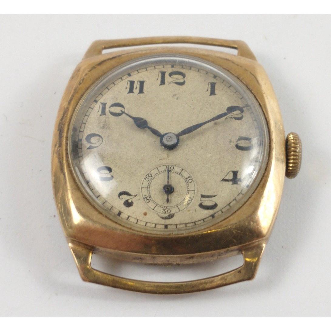 A VINTAGE c1930's 375 stamped yellow gold cased vintage wrist watch with second hand dial at the foot of the dial gross weight 14.3g - watch not working on inspection!