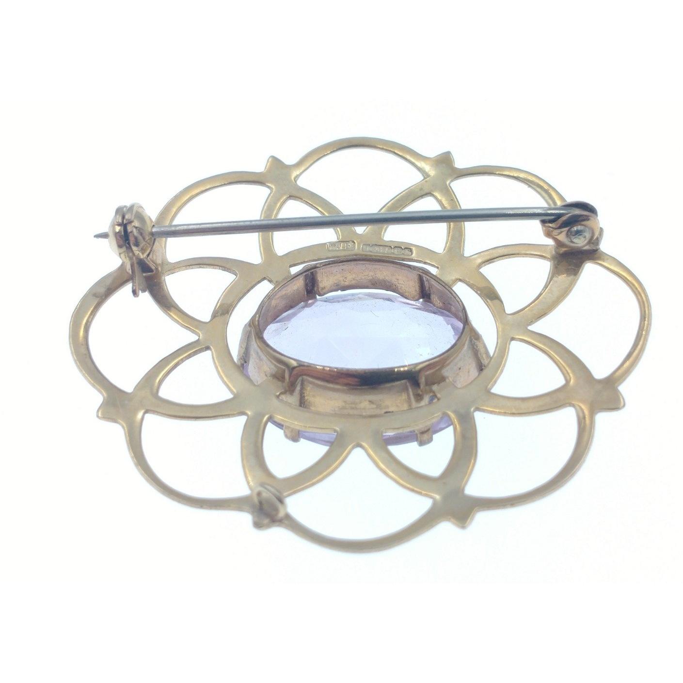 375 Hallmarked Vintage yellow gold brooch with a large oval cut Amethyst centred gross weight 5.50gL: 4cm approx W: 3.5cm approx Gross weight approx 5.50g