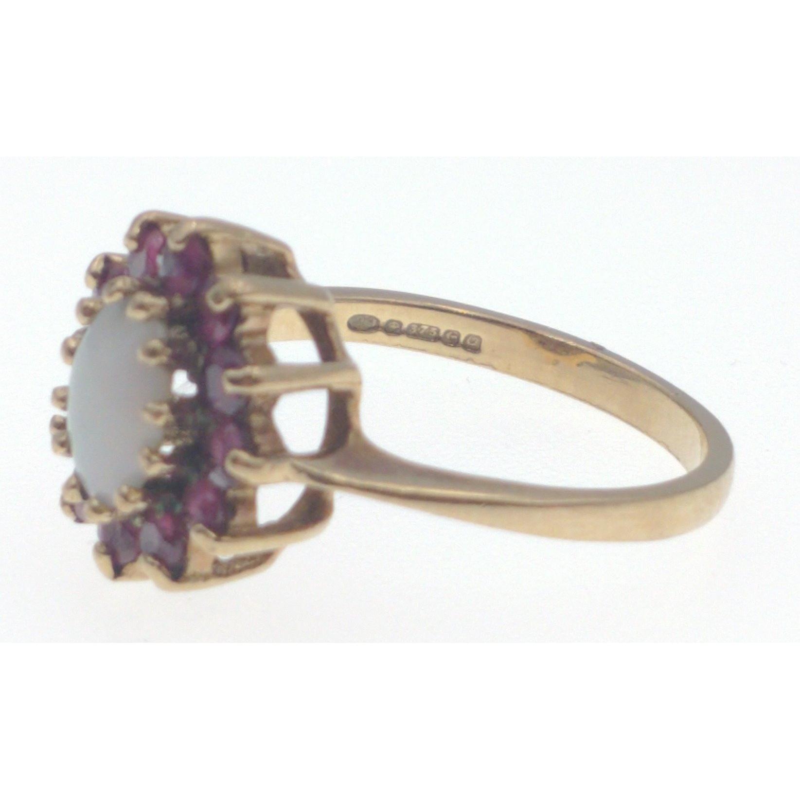 9ct hallmarked yellow gold with an Opal & Amethyst setting ring size M, weight gross 2.65gGross weight approx 2.65g