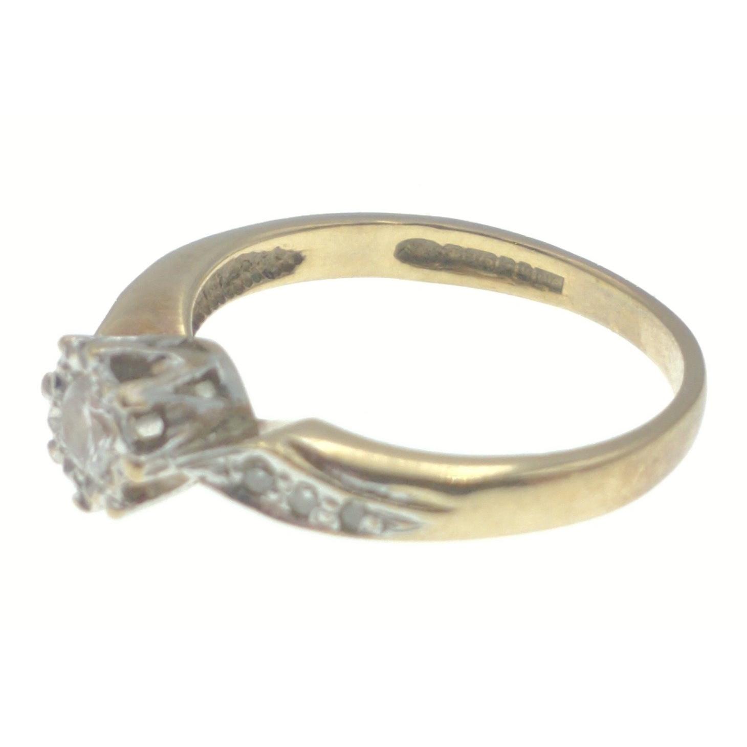 9ct Hallmarked yellow gold ring single stone illusion set with diamond shoulders, size J, weight gross 1.65g approx