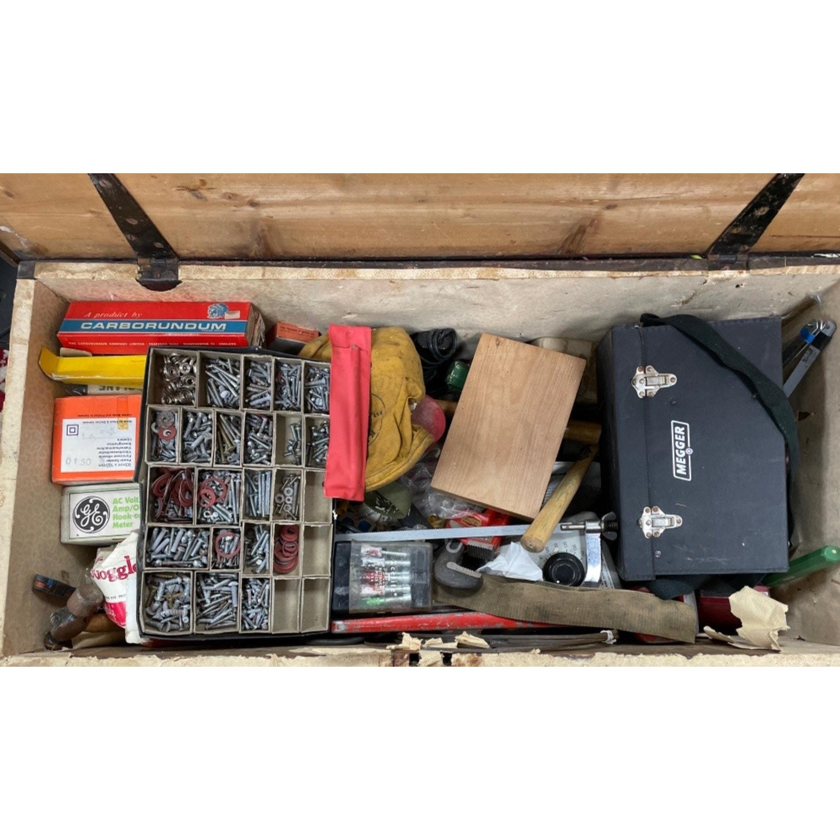 A HUGE VINTAGE TOOL CHEST FILLED with tools and DIY
