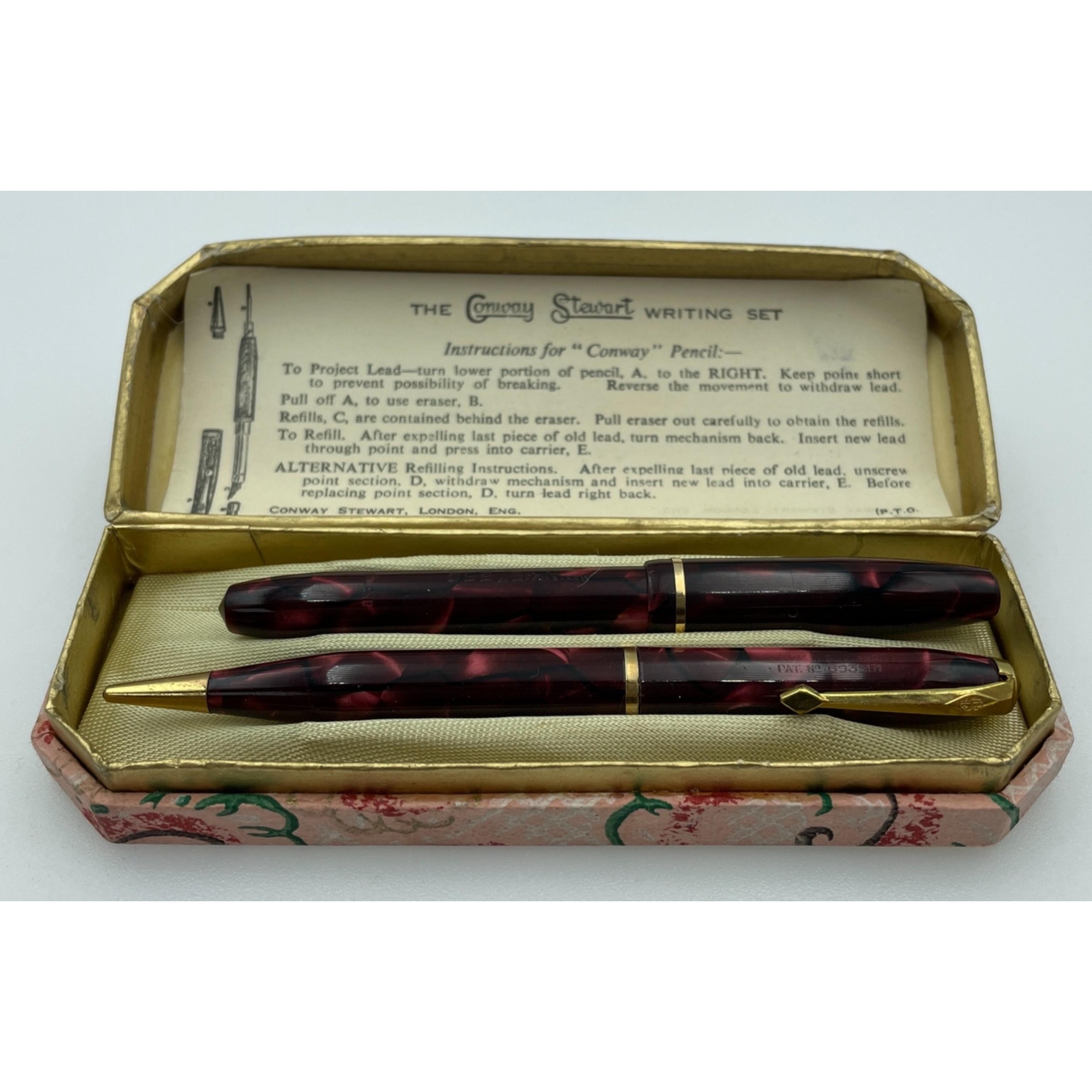 Refund: CONWAY STEWART Dinky Writing Set. Beautiful Maroon finish both pen, with 14ct nib and mechanical pencil in excellent condition, box is excellent and complete with instructions