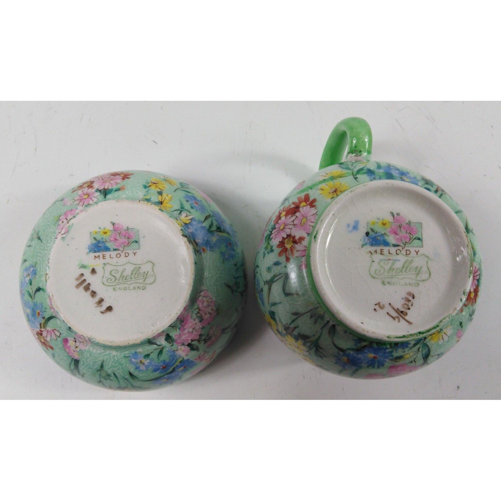Vintage SHELLEY MELODY cream (8cm) and sugar bowl (9cm dia)