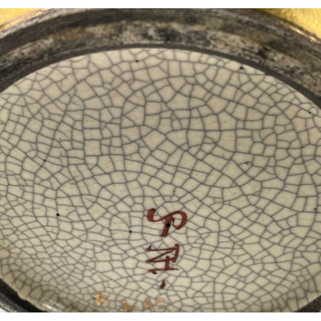 Large colourful crackle glazed ORIENTAL vase gilt with raised design, stands 25cm high