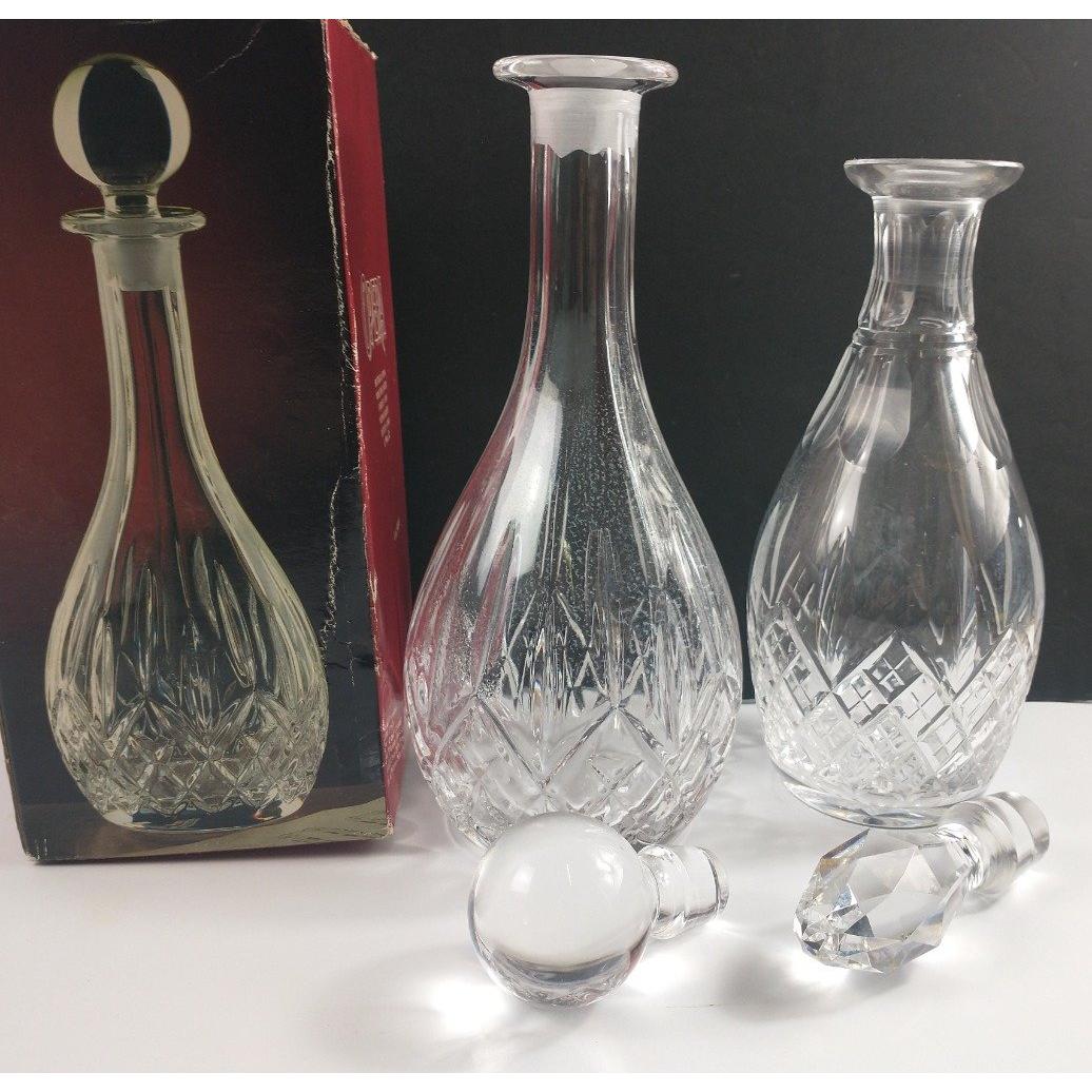 A nice collection of DECANTERS - two square @25cm high plus 5 standard shape etc 28 - 36cm tall