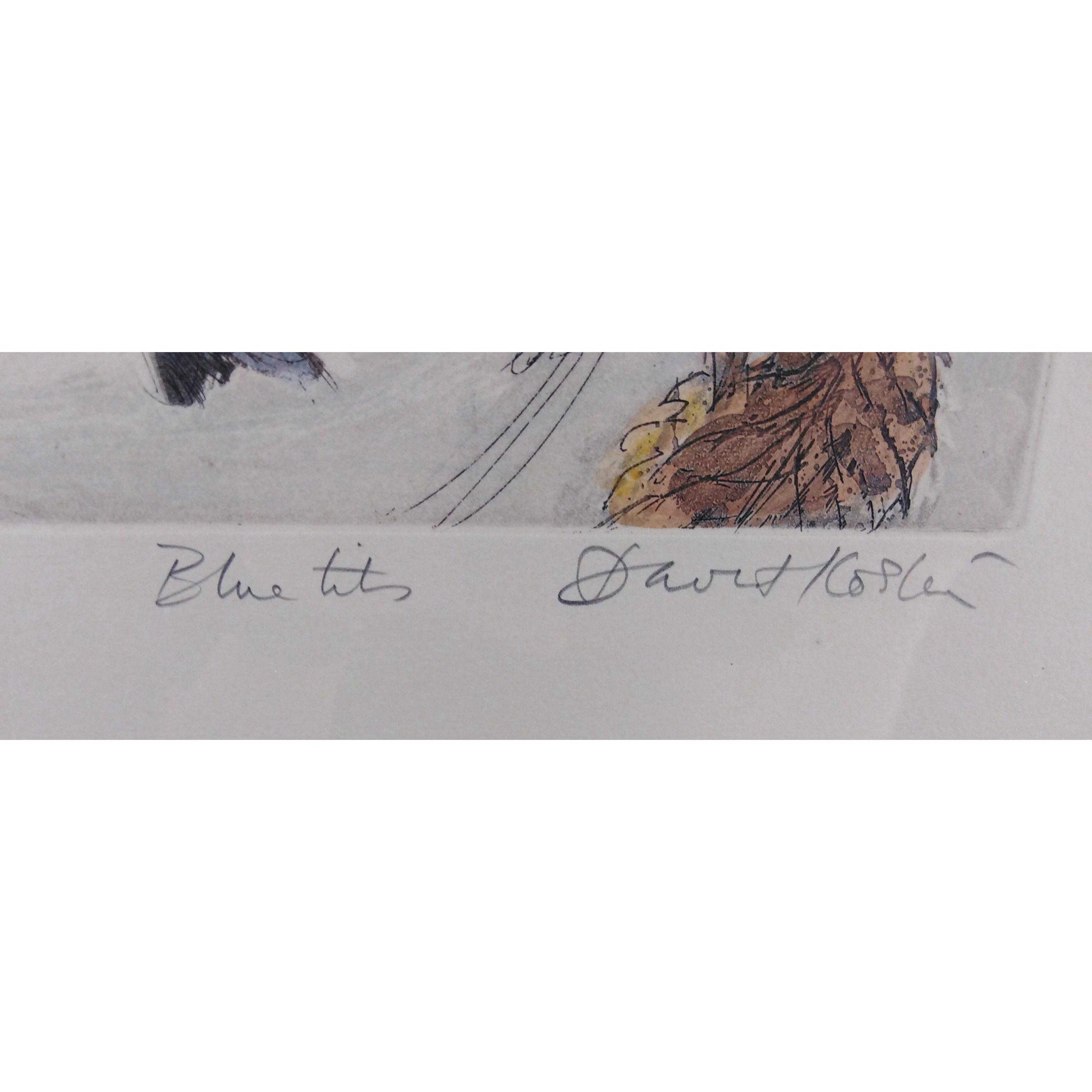 STUNNING! DAVID KOSTER Ltd Edition SIGNED print 49/50 'Blue Tits' 22cm x 30cm
