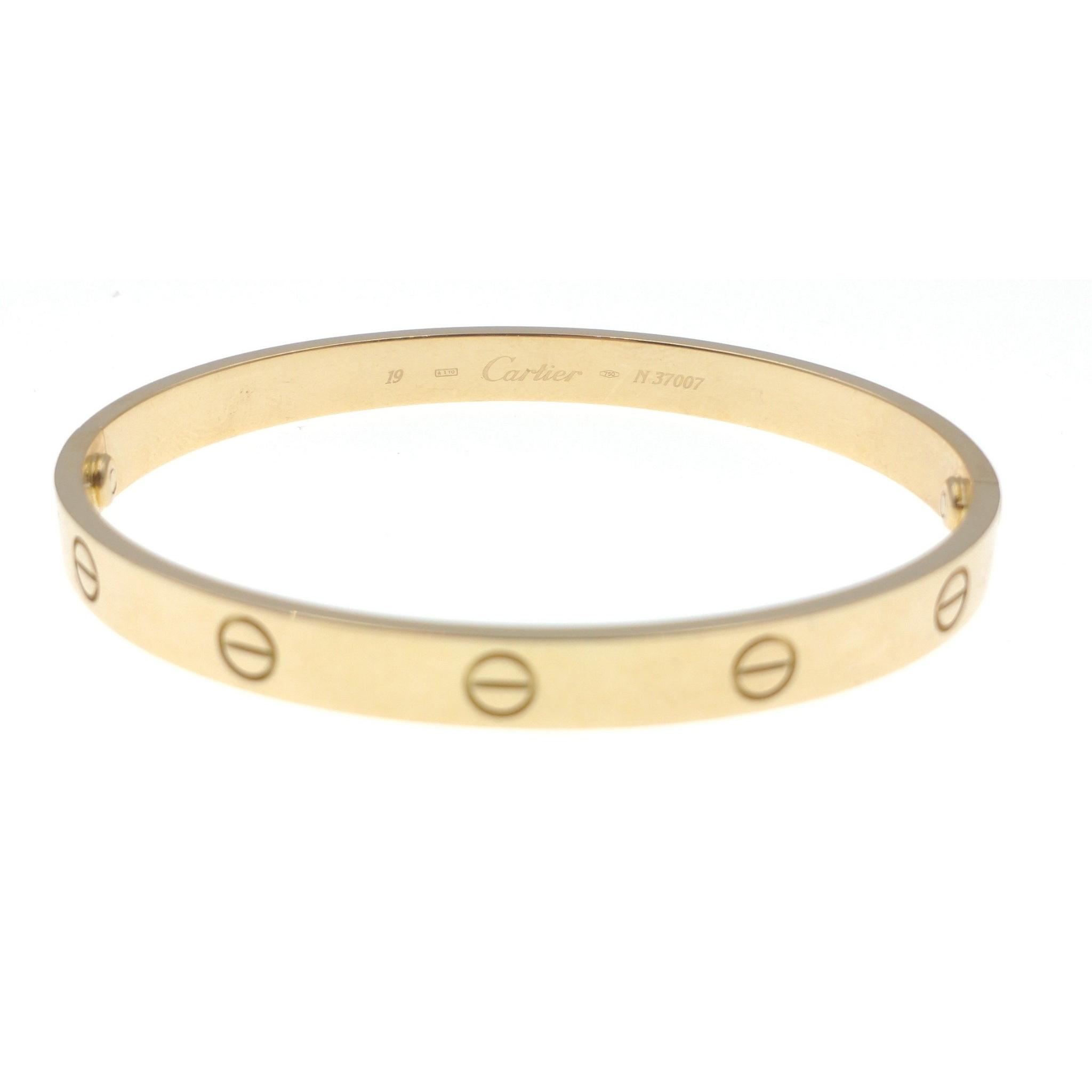 CARTIER 750 stamped yellow gold oval shaped 'LOVE BRACELET' with original key, dimensions 6.5cm x 5.5cm x weight 35.90g approx, from part of an estate with high quality family jewellery collection spanning 100 years - this particular bracelet retail is over £5500!
