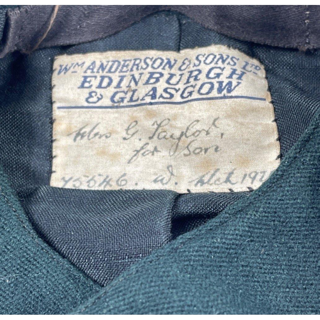 1926 dated A FABULOUS VINTAGE made by WILLIAM ANDERSON & SONS OF EDINBURGH child's kilt jacket ( bottle green in colour) with a Glengarry style hat and also two pairs of tartan kilt sock Approx 4 pieces
