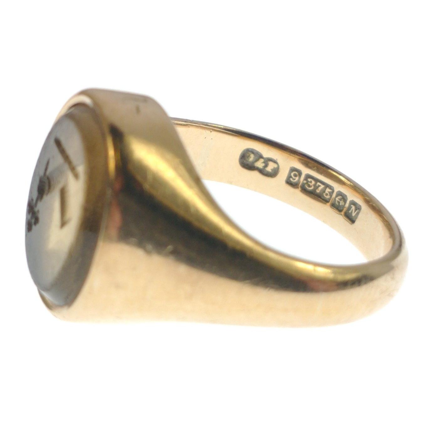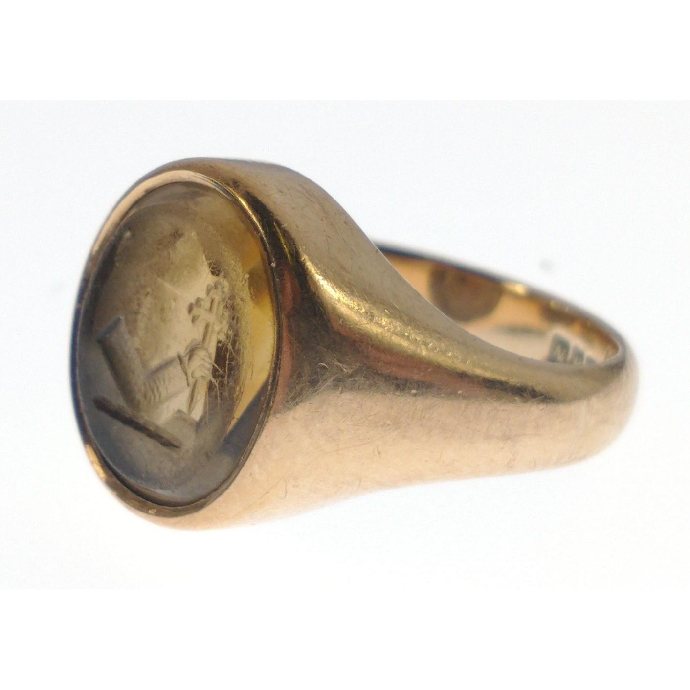 QUITE UNUSUAL! 375 stamped intaglio set PINKY-RING? ring size K/L weight 7.50g approx