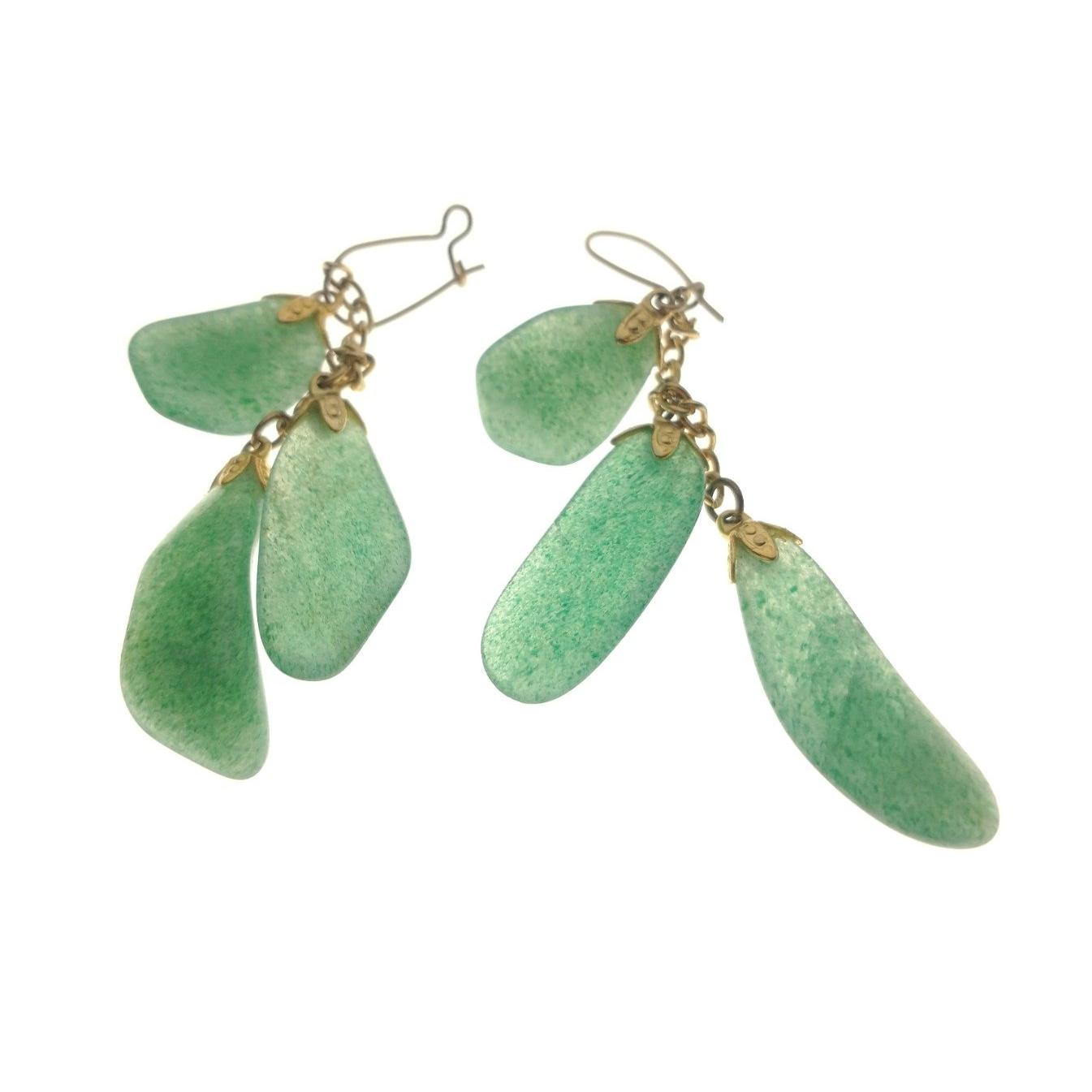 Vintage 'Yellow metal' three jadeite drop EARRINGS, 6cm in length, gross weight 8.10gApprox 2 pieces