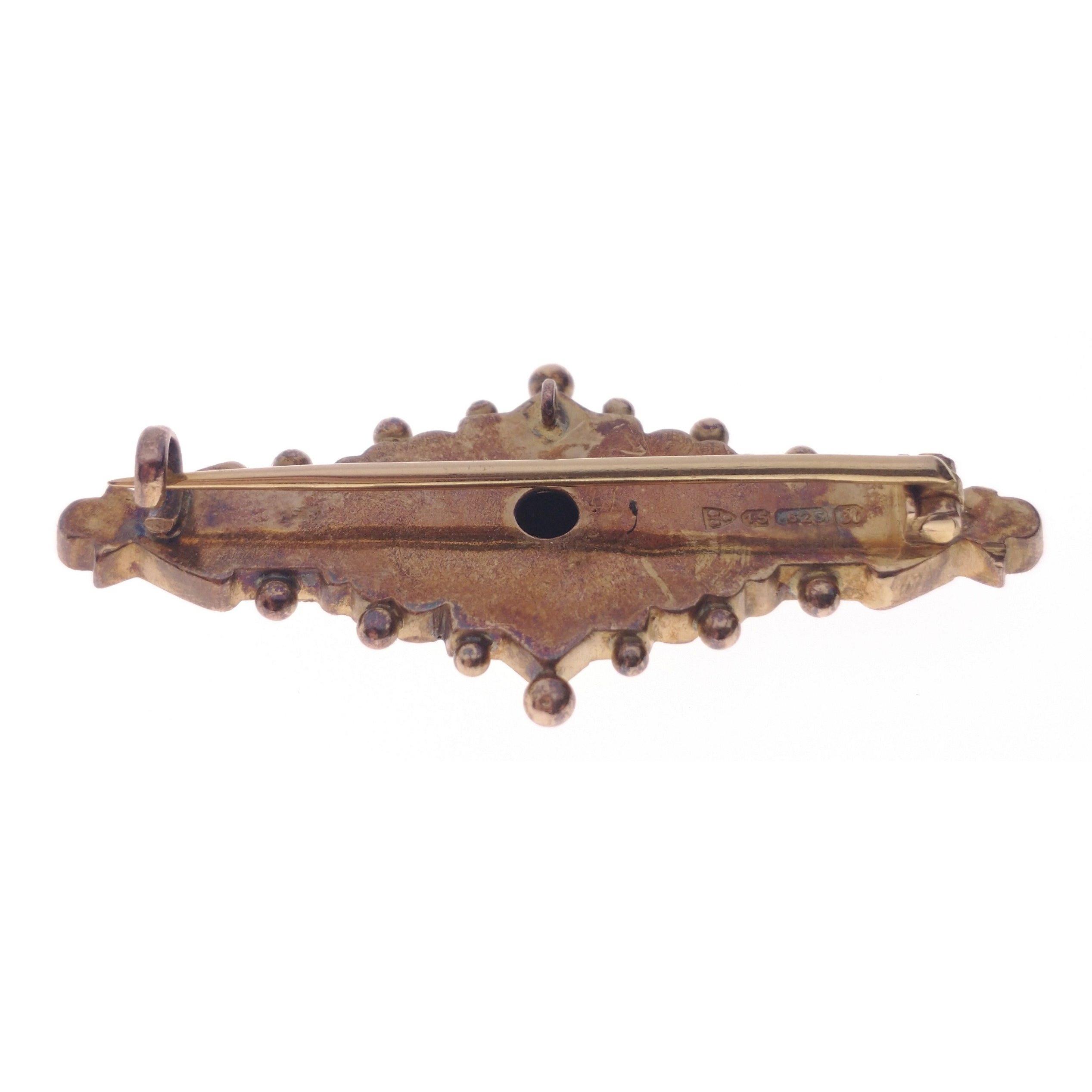 A Chester hallmarked 15ct yellow gold BROOCH with small diamond (tested) star inset, dimensions 4.05cm x 2cm, gross weight 4.40g