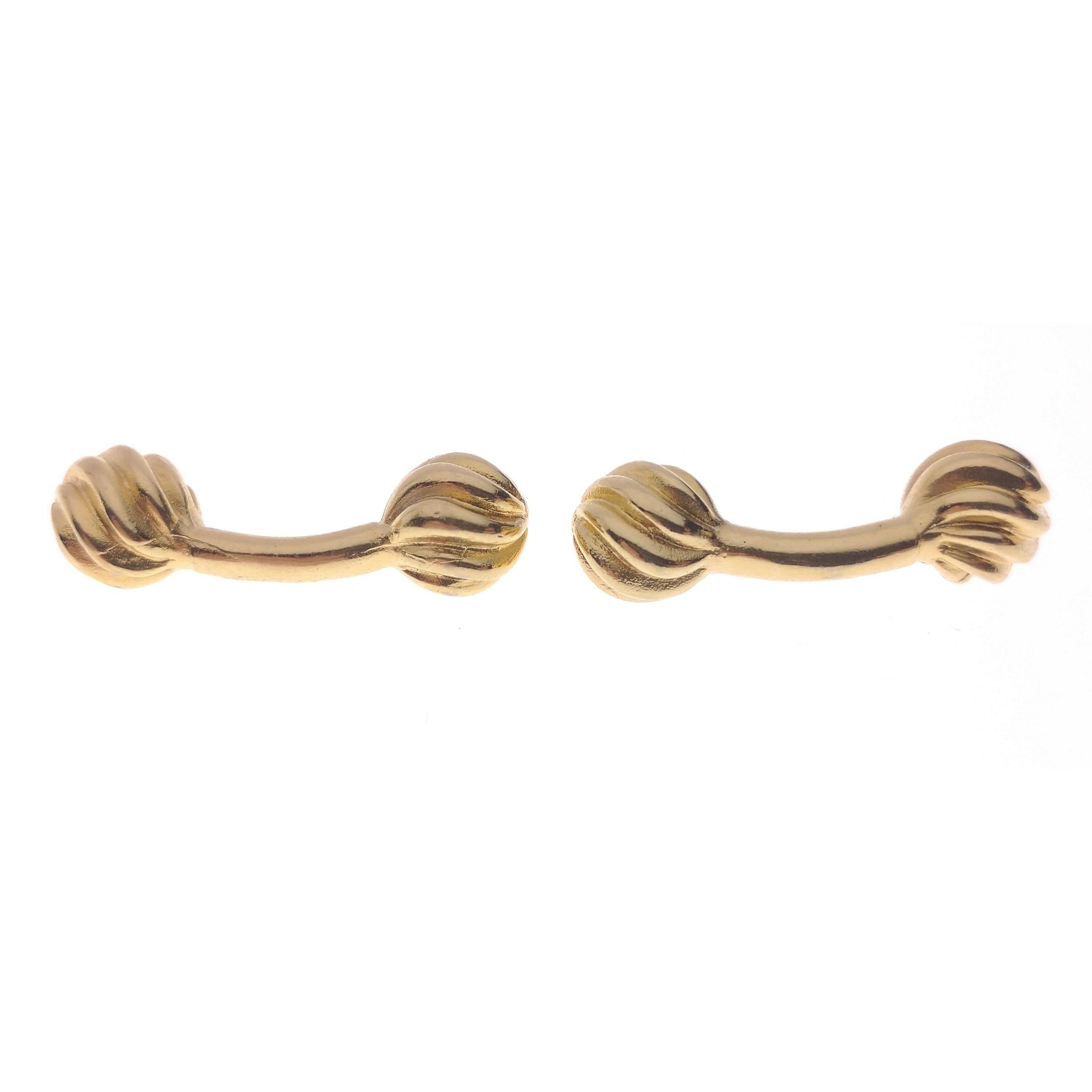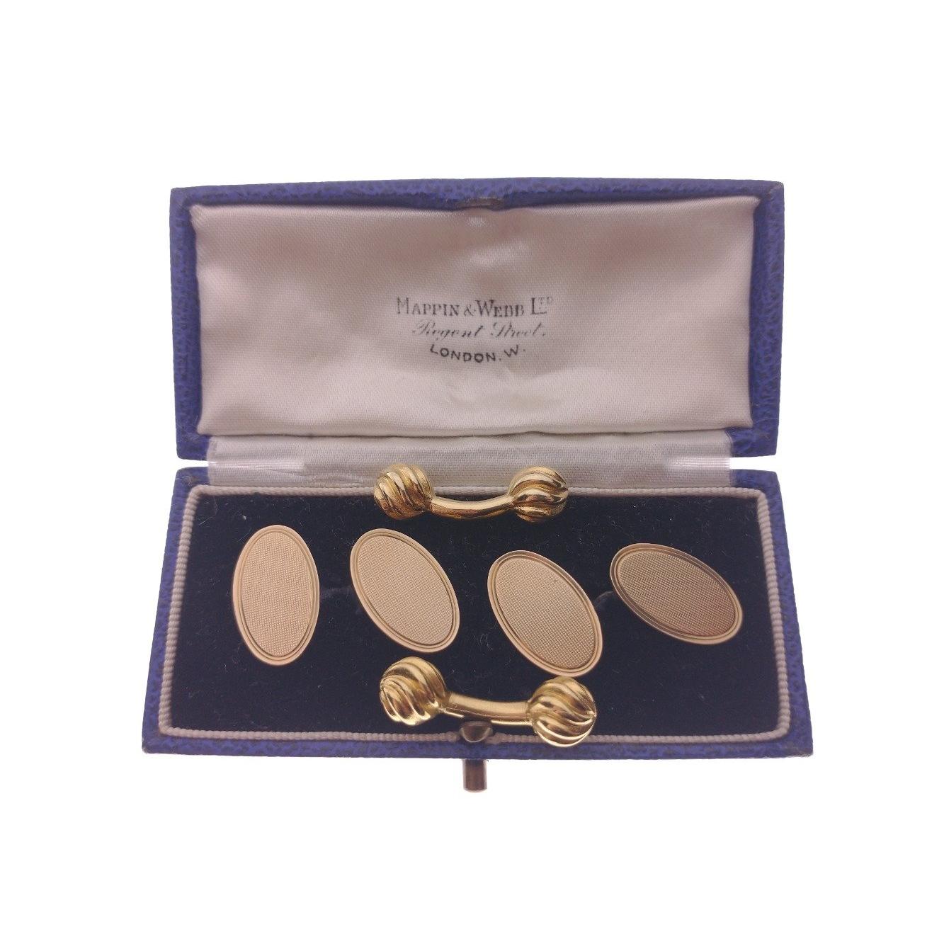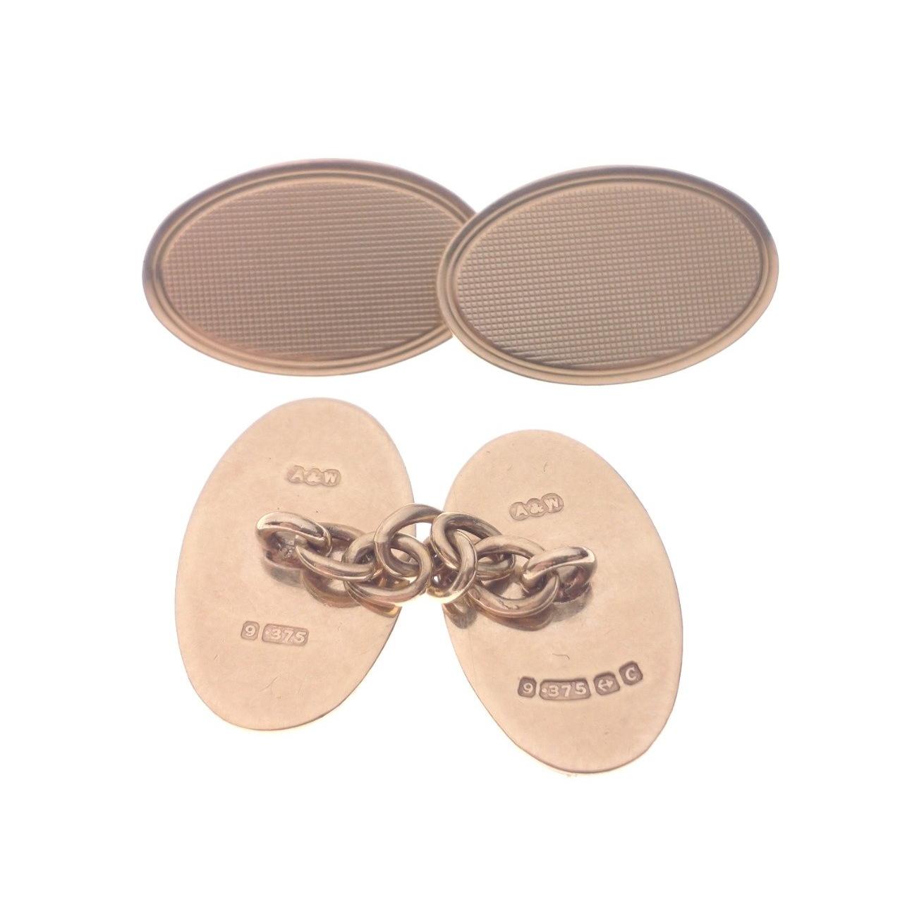 Two pairs of CUFFLINKS, one pair 1977 9ct yellow gold Birmingham hallmarked, weight 5.9g, also another pair of NICE QUALITY 'yellow metal' cufflinks, 3cm long each, weigh 9.2g together in their own jeweller's box