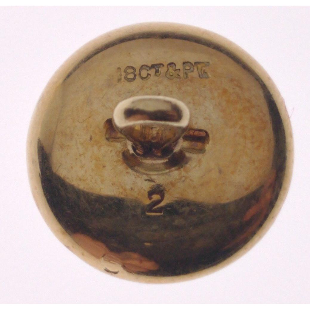 Four boxed 18ct stamped mother of pearl formal wear gents' STUDS set in platinum, gross weight 6.4g, dimension 1.5cm, the original box includes the loops to fasten